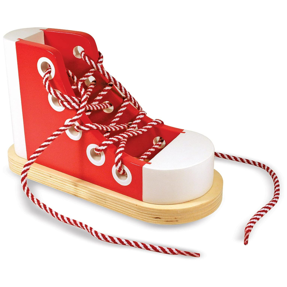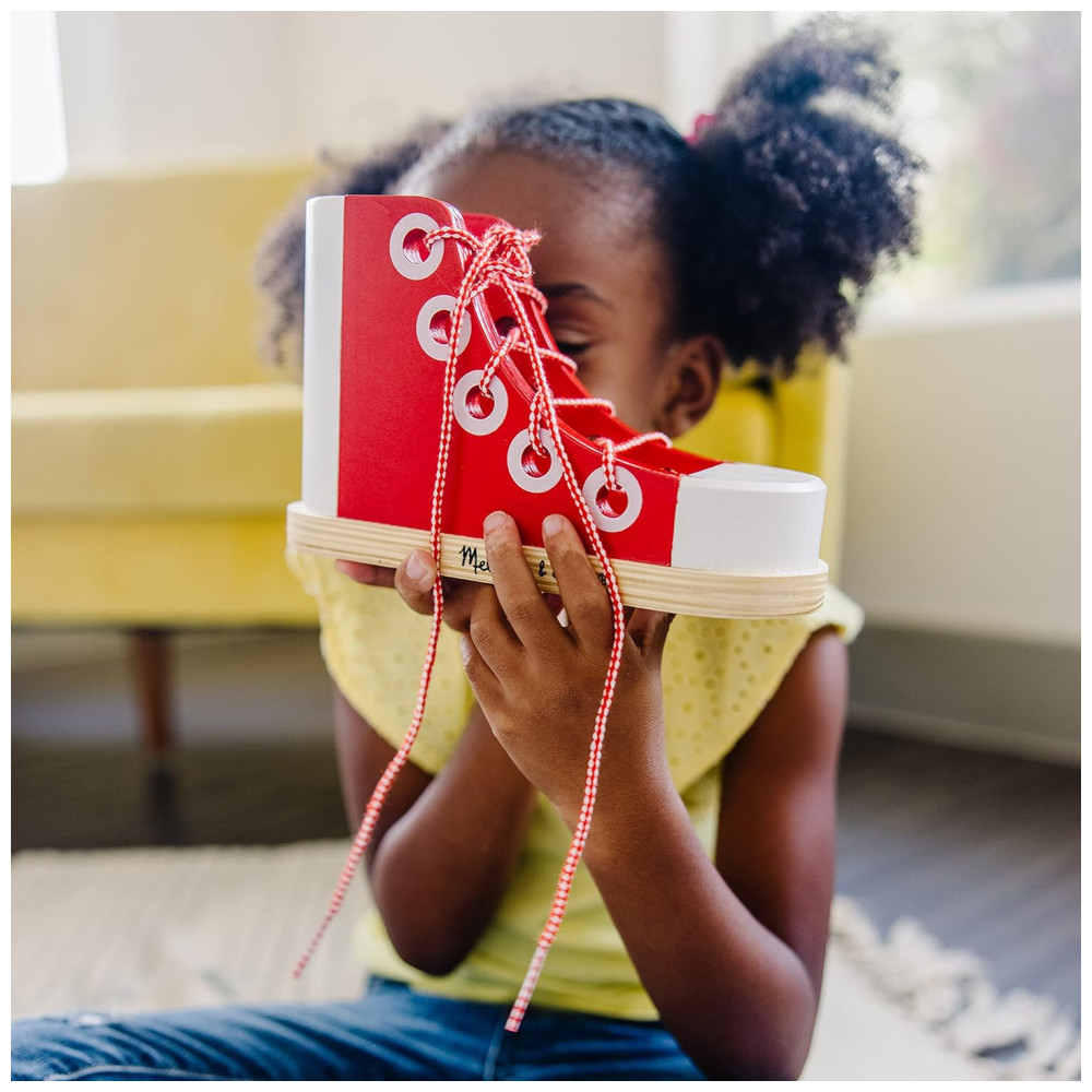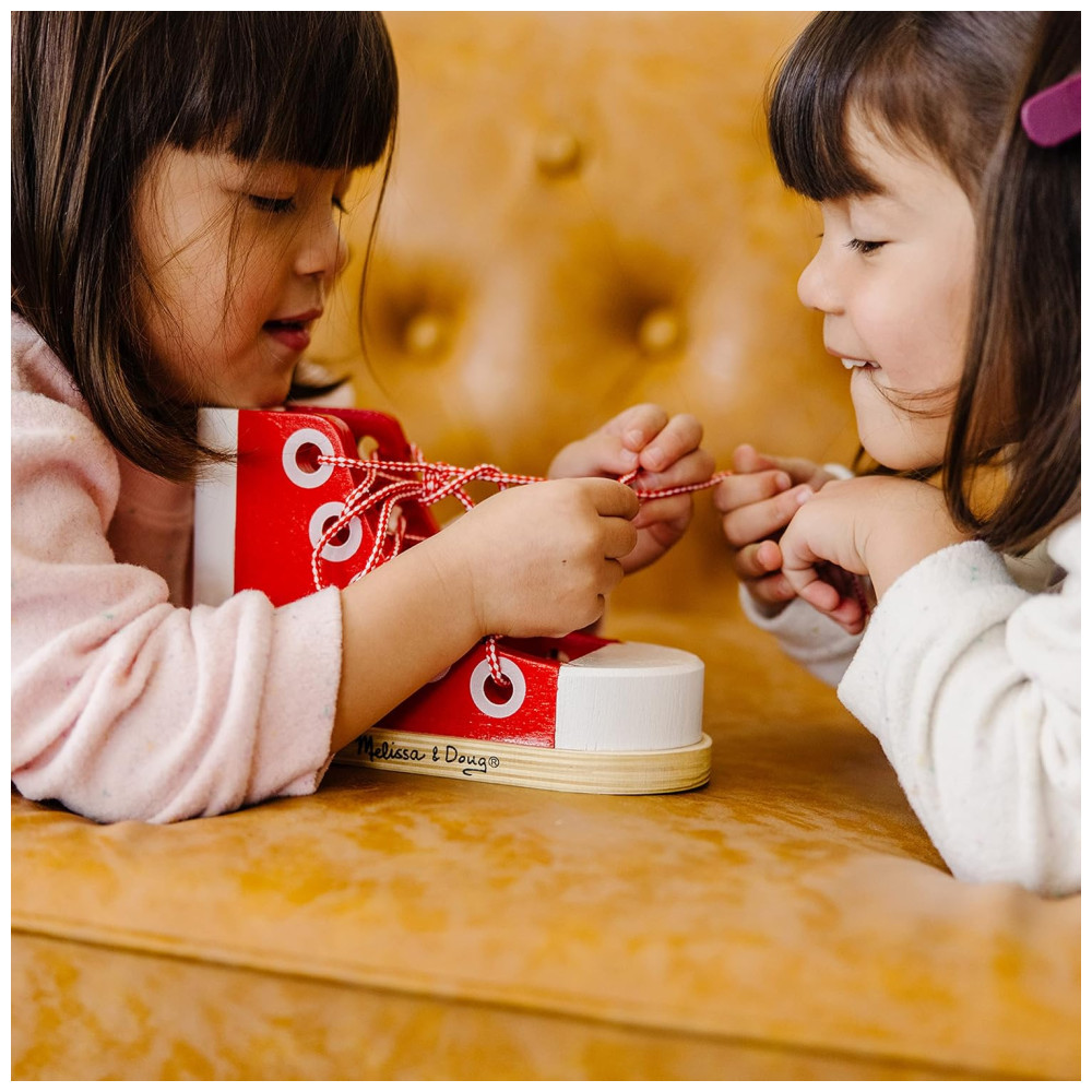 Tênis Deluxe Infantil de Madeira com Cadarço para Aprender a Amarrar na Pratica Melissa & Doug Vermelho