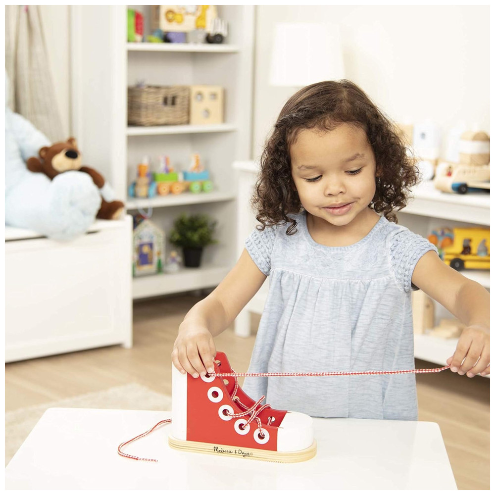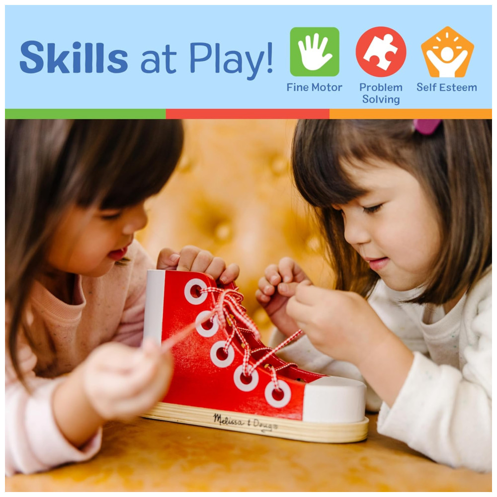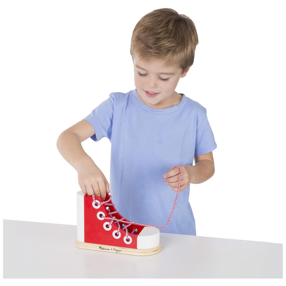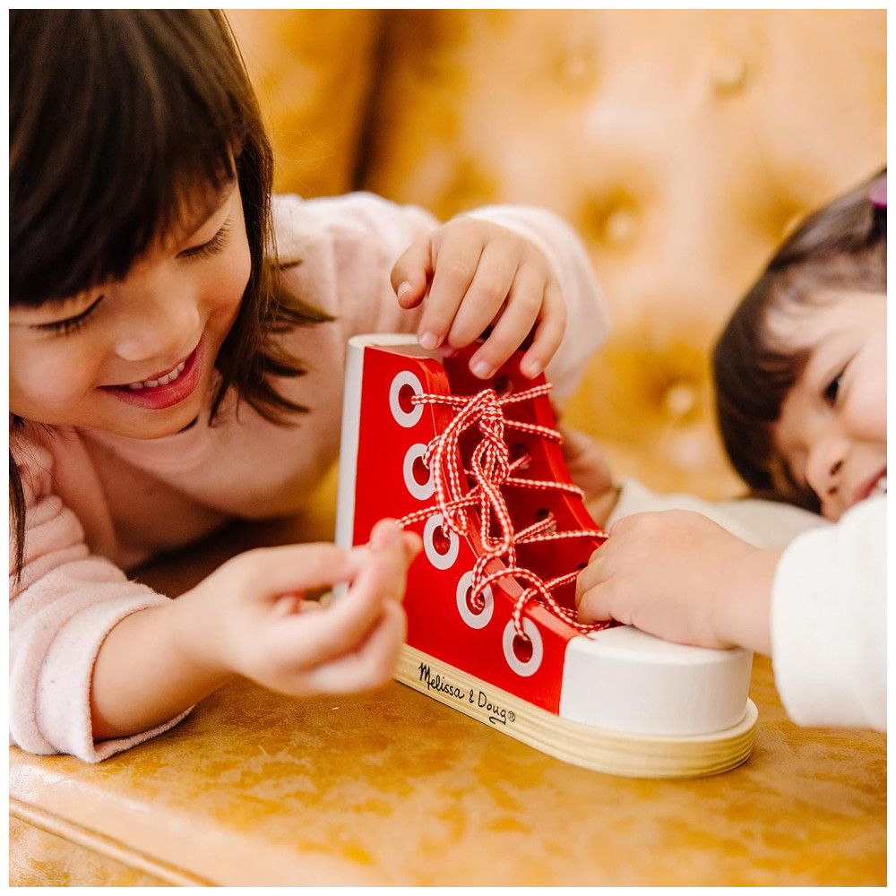 Tênis Deluxe Infantil de Madeira com Cadarço para Aprender a Amarrar na Pratica Melissa & Doug Vermelho