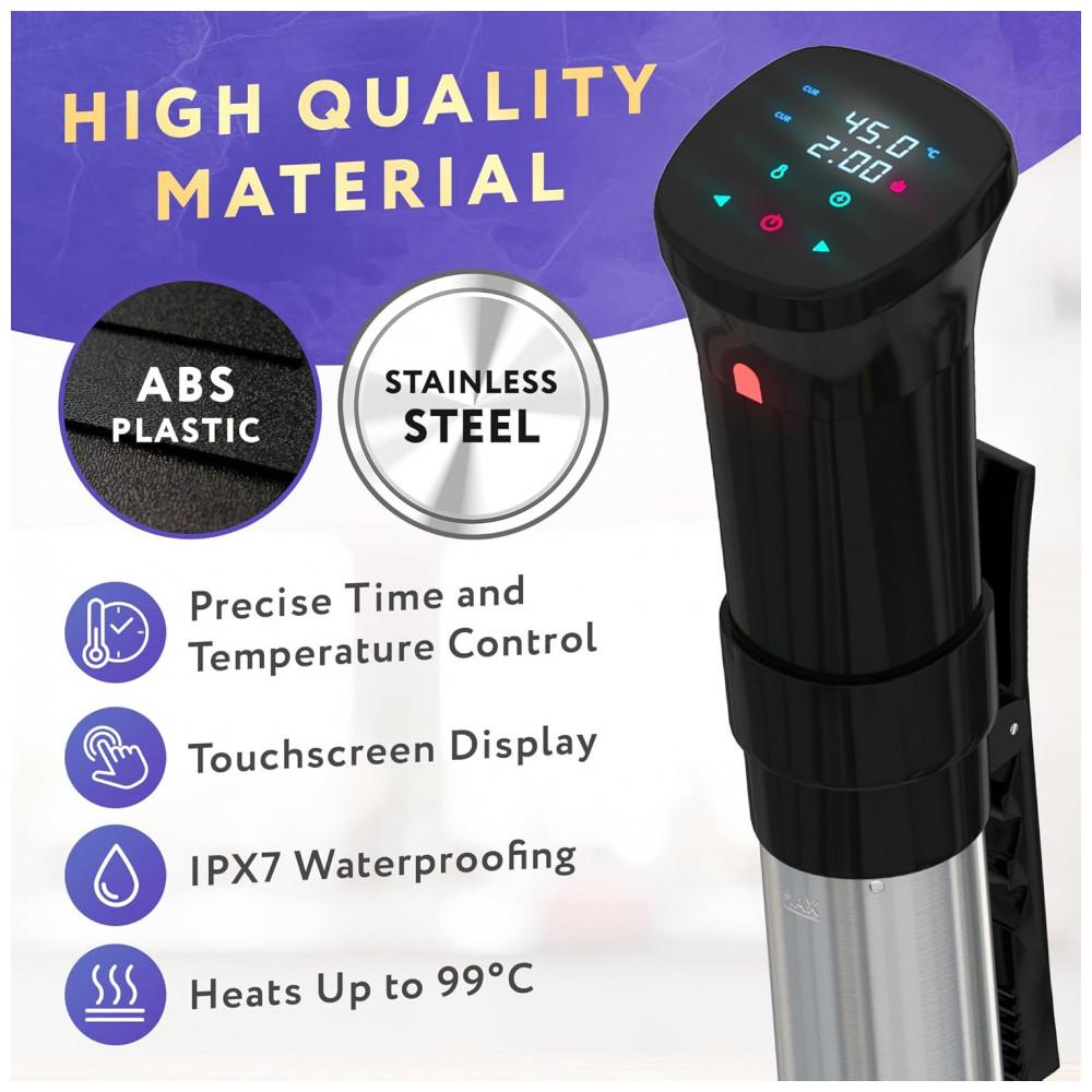 FÁCIL DE USAR E CONTROLE COMPLETO DA TELA DE TOQUE O fogão sous vide APQ facilita muito a alimentação saudável. Conecte a energia e ajuste a temperatura. O fogão sous vide APQ 1100w não tem problemas com WIFI, Bluetooth, testado pelo . Botão simples, operação de um botão, é simples de usar. Apenas a roda de rolagem para aumentar ou diminuir o número na tela, é fácil de dominar e usar.