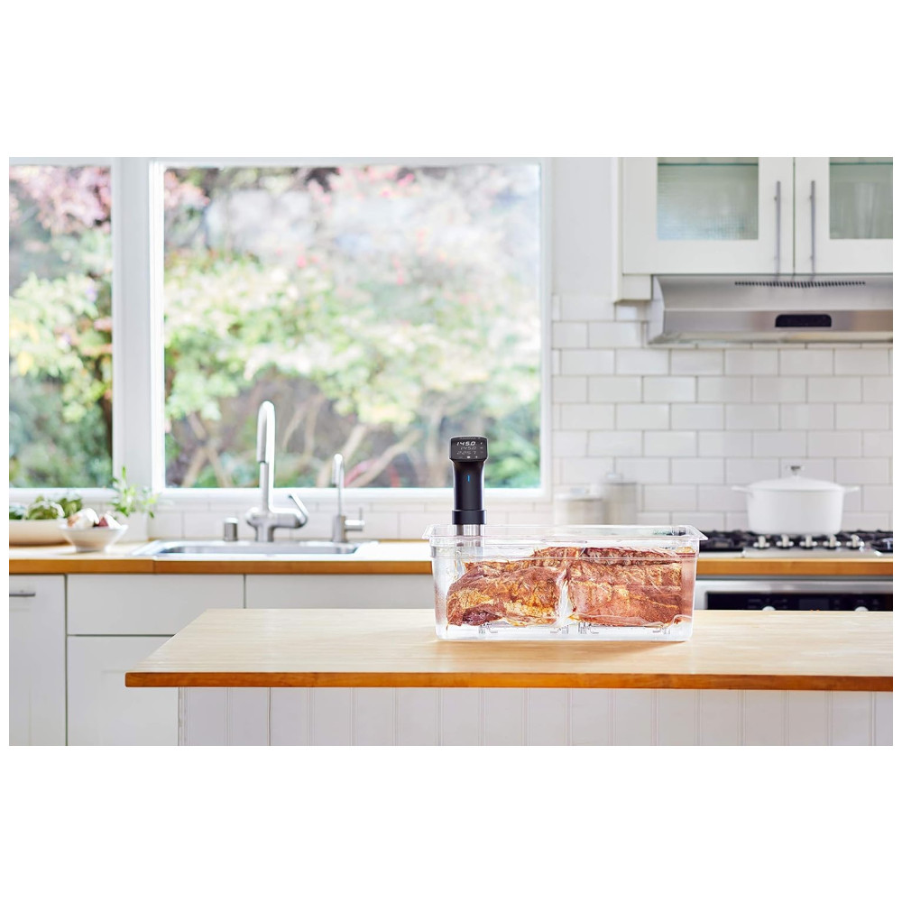 Poderoso. Com 1200W, uma vazão de 12 litros por minuto e a capacidade de aquecer precisamente 100 litros de água, nunca houve um dispositivo sous vide. 10.000 horas de cozimento contínuo. Com um poderoso motor DC sem escovas de rolamento duplo, combinado com um aquecedor isolado de núcleo duplo, o Anova Pro mantém seu banho de água a uma temperatura precisa o tempo que você precisar, para que não haja interrupção no seu serviço. Durável. Feito de metal e aço inoxidável, o Anova Pro é testado em queda e classificado como IPX 7 Deixe cair o dispositivo no chão ou mergulhe o debaixo de água, e você pode continuar a cozinhar com energia duradoura para lidar com os turnos mais exigentes na cozinha. Preciso. Crie pratos exatamente como você os quer para cada convidado usando o fogão de precisão Enova Pro. A sonda de temperatura é precisa para , 0. 05 C em tamanhos de banho até 100 litros a até 92 C. Feita para a cozinha profissional. O fogão de precisão Pro da Anova é um circulador de imersão sous vide de nível profissional e Wi Fi. Projetado para o chef profissional, o fogão de precisão Anova Pro pode funcionar continuamente por até 10.000 horas e é projetado com construção de metal para maior durabilidade. Conectividade WiFi 802.11 b , g , n 2.4 GHz 110V