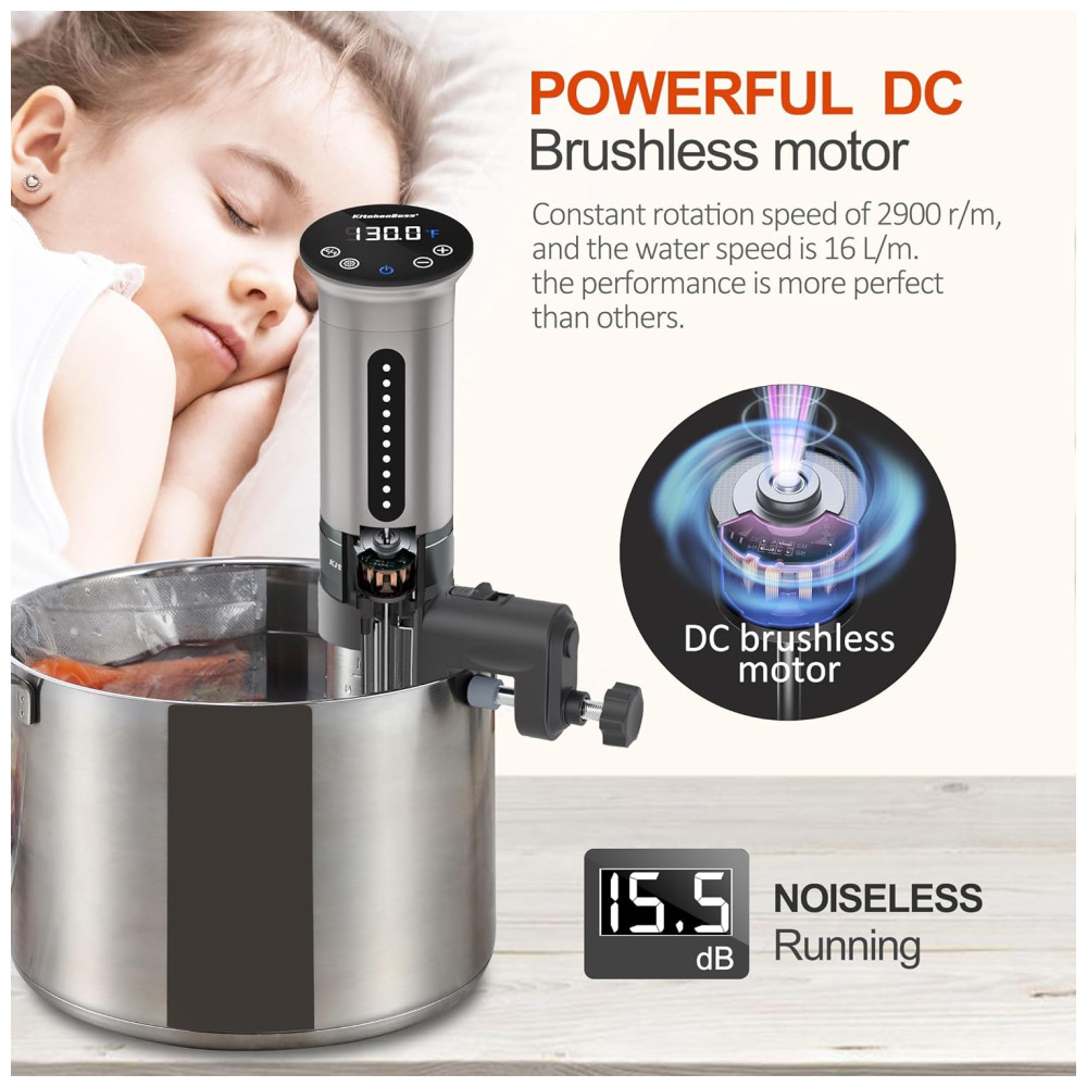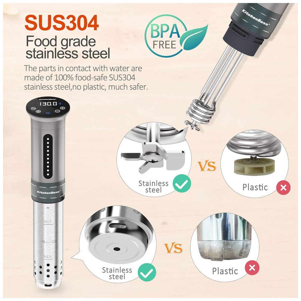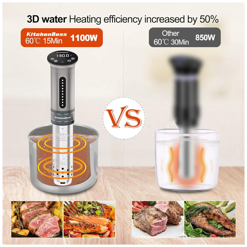 Termocirculador Sous Vide 1100 Watt IPX7 Fogão de Imersão 110v KITCHENBOSS A01G310S11U Preto