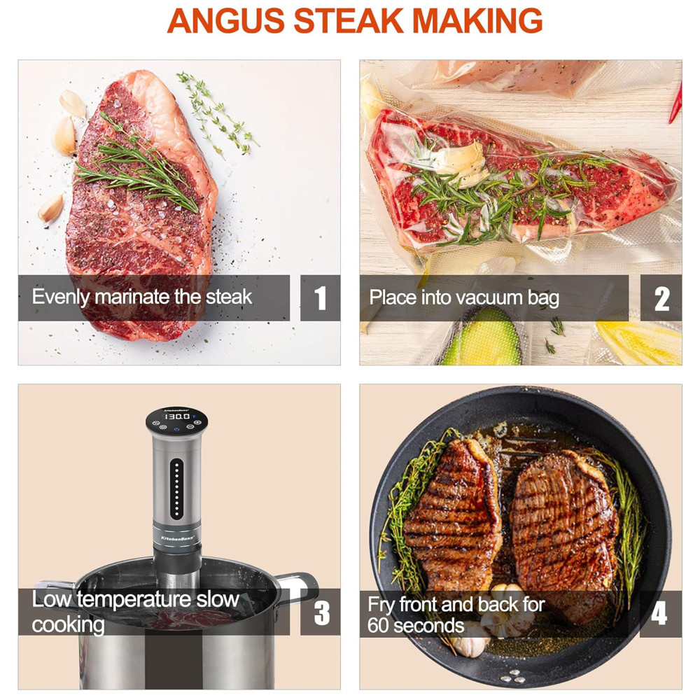 Vida saudável Você pode usar o fogão sous vide G300 , G310 para ovos de spa, bife, costeletas de cordeiro, lagosta, bacon, sem cozinhar demais, retendo mais nutrientes e vitaminas para que você possa desfrutar do sabor perfeito do chef de alta classe Michelin sempre