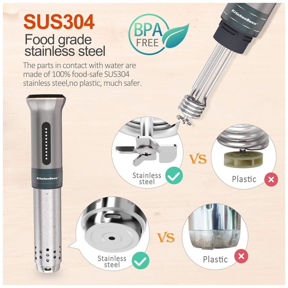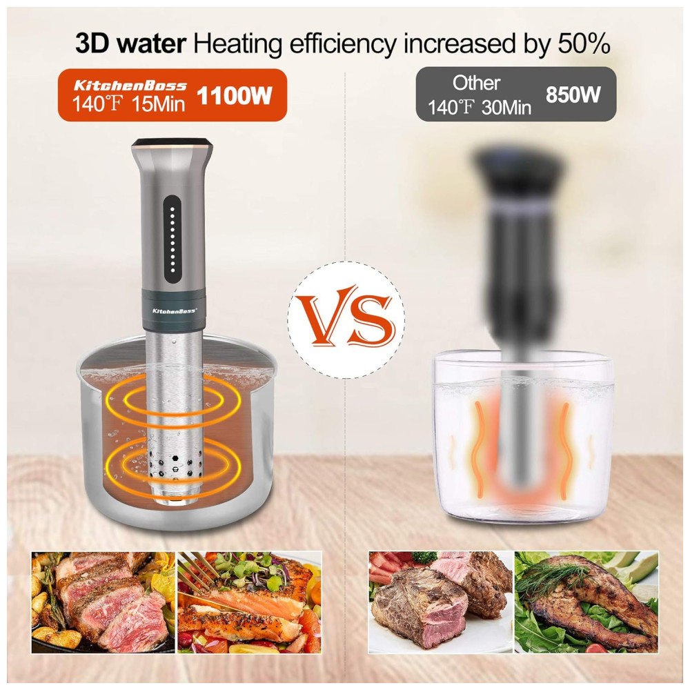 Termocirculador Sous Vide Fogão de Imersão 1100 Watt IPX7 110v KITCHENBOSS A01G300S11U Cinza escuro