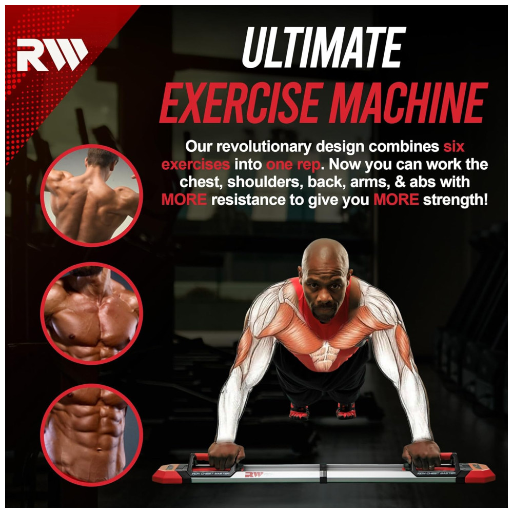 Cientificamente comprovado para ativar 58 mais músculos de pico do que o supino Combina os exercícios de supino, supino com halteres, flexões, cruzamentos de cabos, deck de peitoral e mosca com halteres sem a despesa de equipamentos de ginástica em casa
