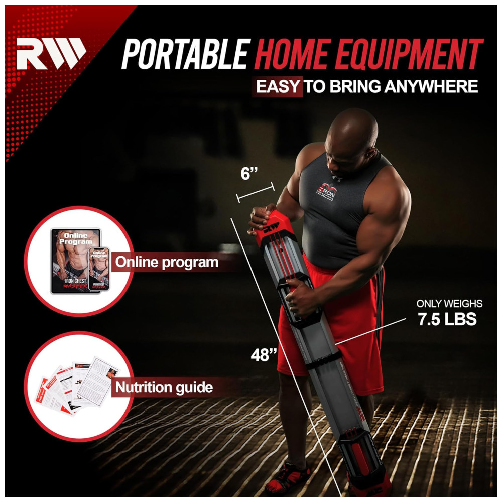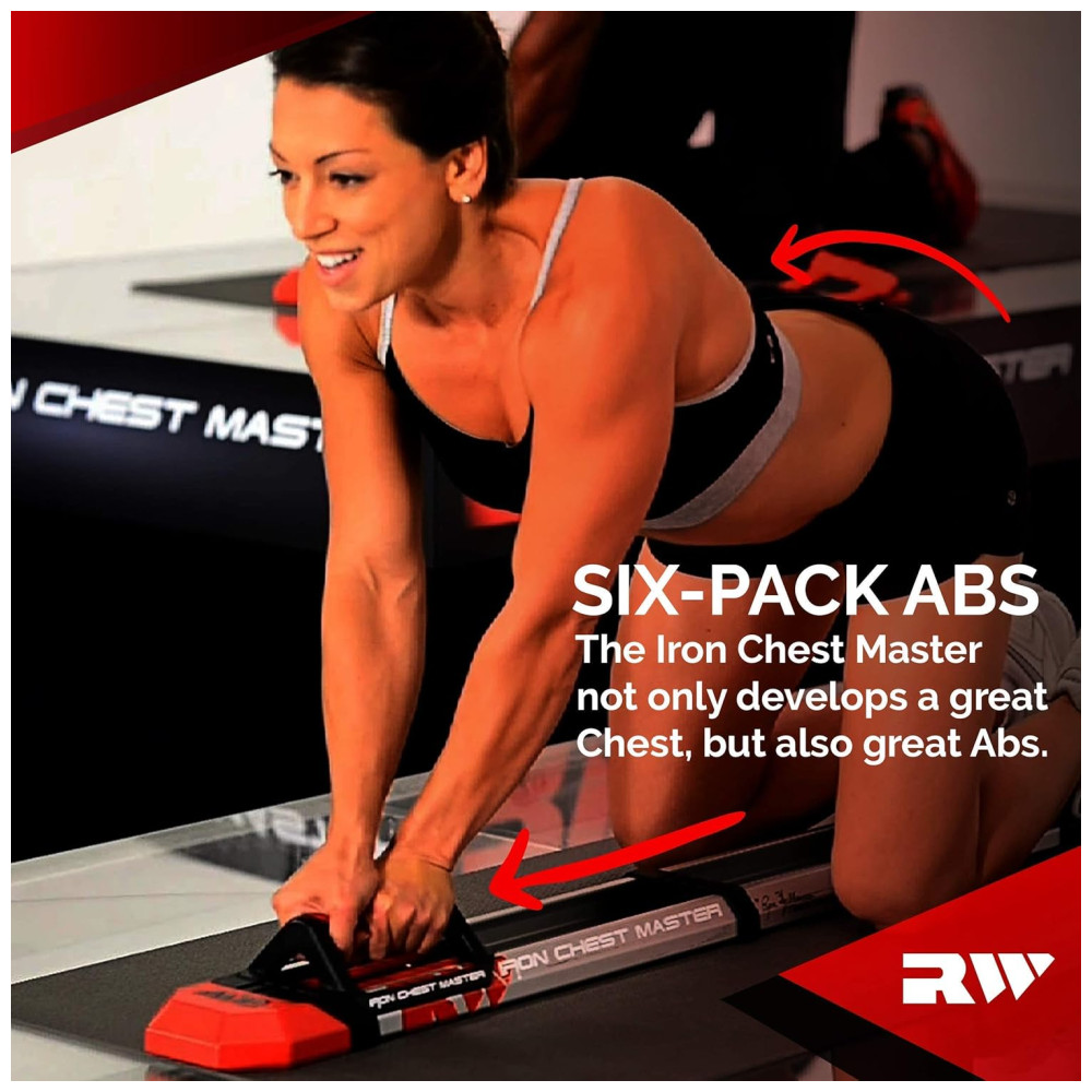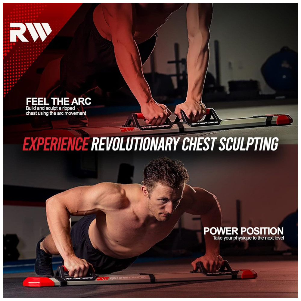 Equipamento de treino em casa para homens e mulheres que usa o Movimento de Arco natural do corpo para uma amplitude de movimento completa, desenvolvendo rapidamente um peito maior, mais forte e mais magro e fornecendo 46 mais ativação muscular de pico do que a flexão