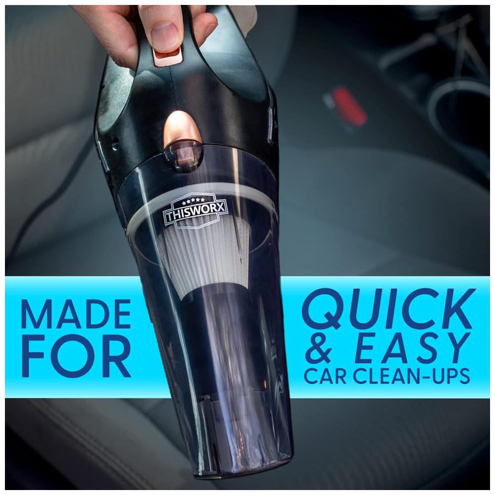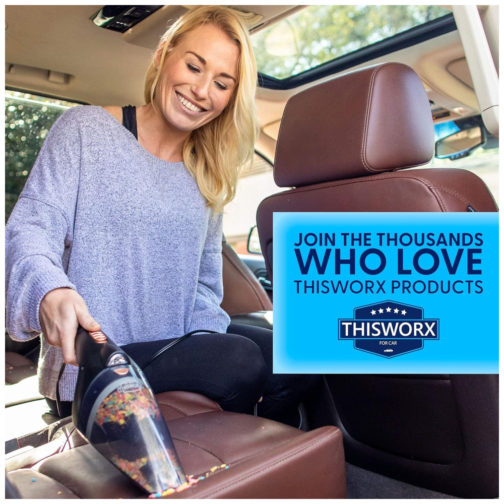 MANTENHA O SEU CARRO NÍVEL PROFISSIONAL LIMPO Não há mais migalhas, poeira ou sujeira Com o nosso aspirador de pó portátil ThisWorx, você estará livre de qualquer sujeira molhada ou seca, até mesmo líquidos, cinzas de cigarro ou pelos de animais de estimação