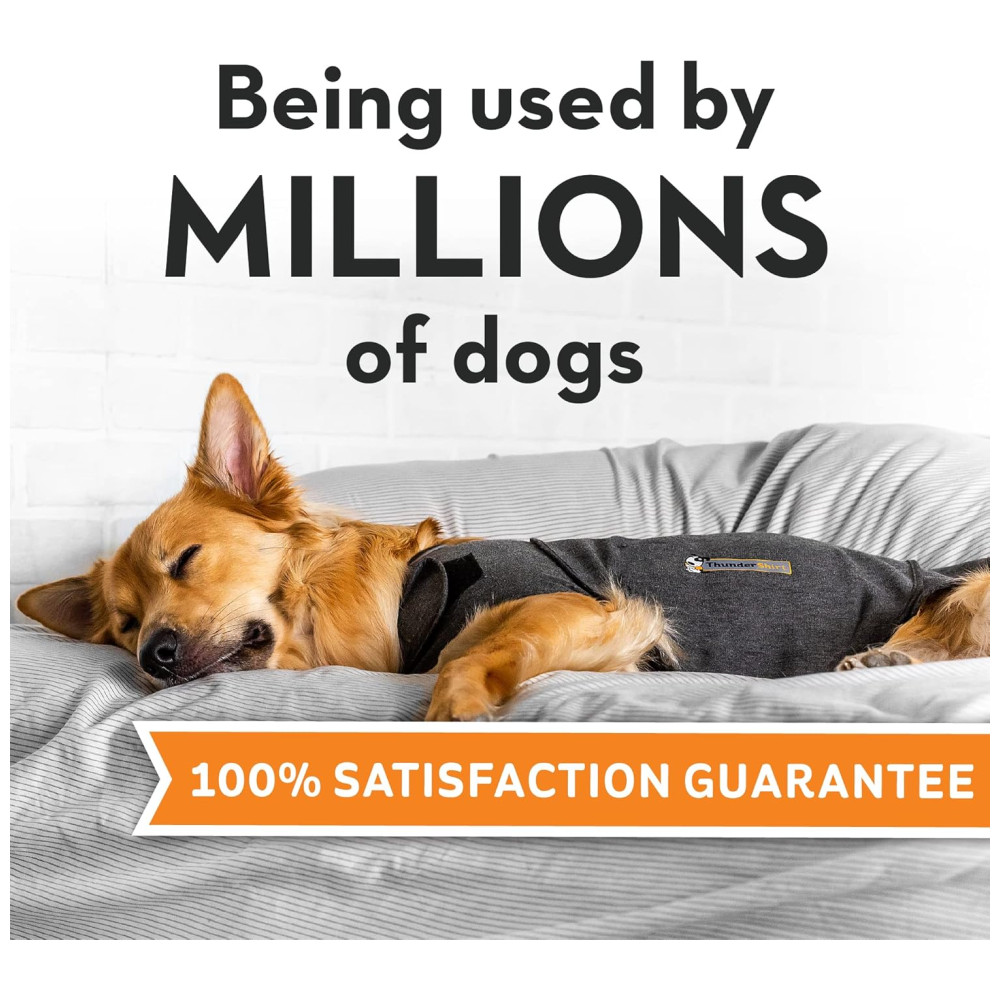 Ajude seu cão a ficar calmo durante tempestades Para muitos cães, as tempestades podem ser uma experiência assustadora. O envoltório calmante ThunderShirt aplica uma pressão suave, semelhante a enfaixar um bebê, para ajudar seu cão a se sentir mais e calmo. ThunderShirt ajuda a acalmar em mais de 80 dos casos e pode ajudar seu cão ansioso a arfar, coçar, cavar, tremer, se esconder e muitos outros sintomas de ansiedade ou medo.