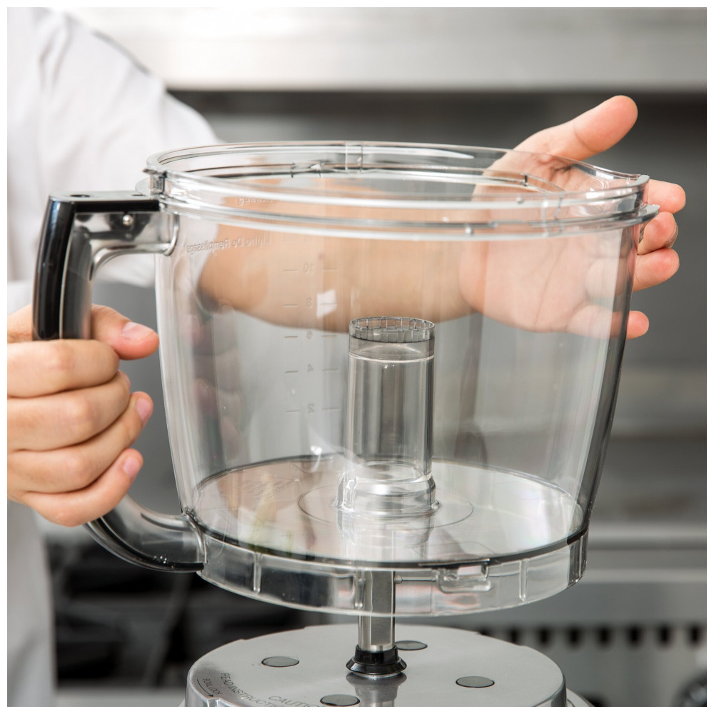 Tigela de processamento em lote Waring WFP16S2 com capacidade de 4 qt (3,8 L), acessório essencial para processadores de alimentos da linha WFP16S em cozinhas profissionais. Fabricada em policarbonato com sistema LiquiLock selado, permite manipulação segura de líquidos como sopas, molhos e emulsões durante transporte e despejo inclinado. Indicada para preparações em volume médio com lâminas S e discos intercambiáveis.