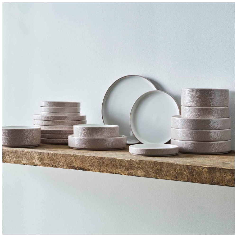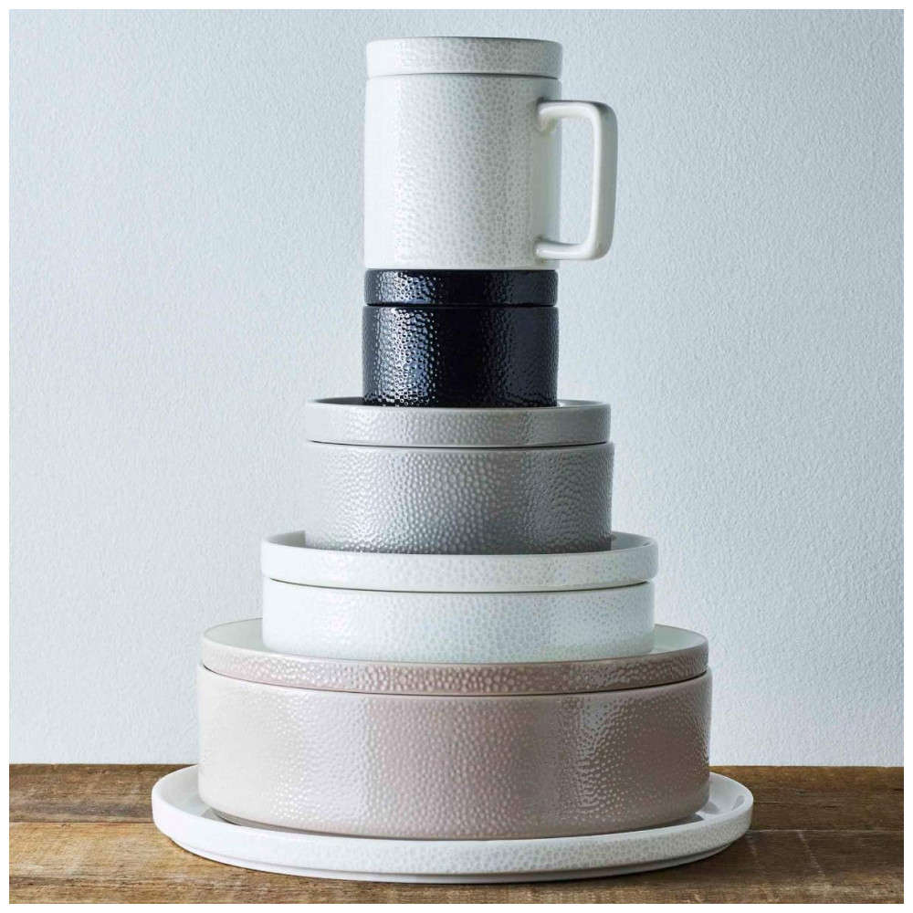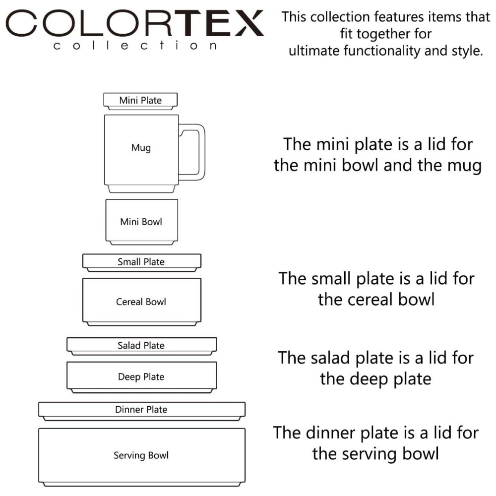 Cada peça combina máxima funcionalidade e estilo: o prato pequeno pode servir como tampa para a tigela pequena e a caneca, enquanto o prato de salada funciona como tampa para o prato fundo. O prato de jantar, por sua vez, também pode ser usado como tampa para a tigela de servir, aumentando a versatilidade da coleção.
