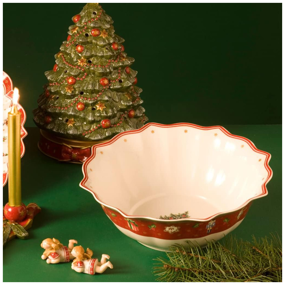 Tigela Saladeira Natalina com Capacidade de 1.5L Material de Porcelana Premium e Formato Redondo Villeroy Boch Branca e Vermelha