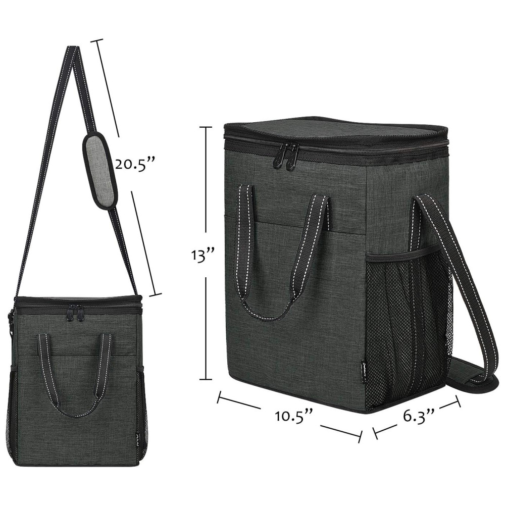 SACO DE REFRIGERAÇÃO ACESSÍVEL 11×7,5×13,5 , 28x19x34cm C x L x A, o porta vinhos grande é um refrigerador muito prático que pode conter até 6 garrafas de vinho facilmente. Vinho e bolhas permanecem gelados pelo menos durante 6 horas. Precisa ser com pequenos blocos de gelo para se manter mais fresco por mais tempo. Muito eficaz tanto para aquecer quanto para se refrescar. Resfriar o verão e parar de congelar no inverno. Você também pode usá lo como bolsa térmica para almoçar.