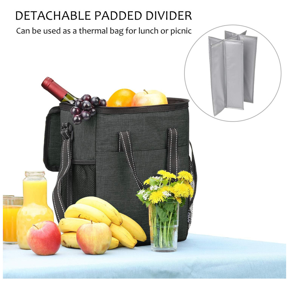 DIVISOR REMOVÍVEL Bem acolchoado com divisor interno para 6 garrafas. O separador no saco é um toque agradável para evitar que as garrafas batam umas nas outras. É fácil de tirar, por isso pode ser também para latas ou alimentos. Você pode ser na adega da caravana para viajar e manter as garrafas seguras.