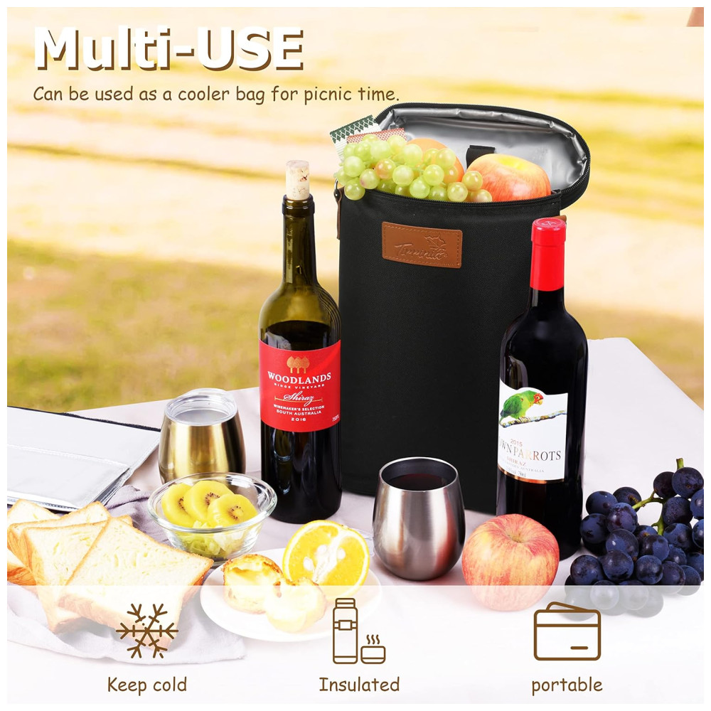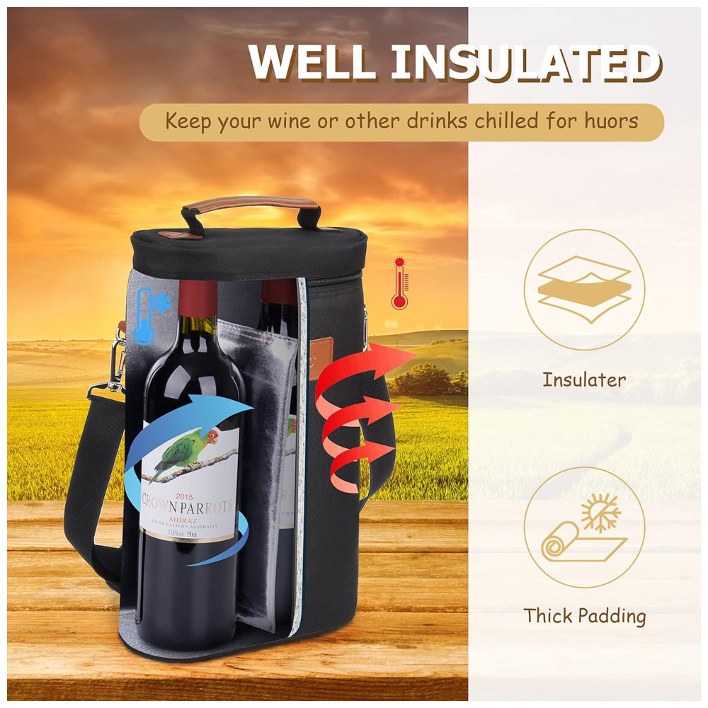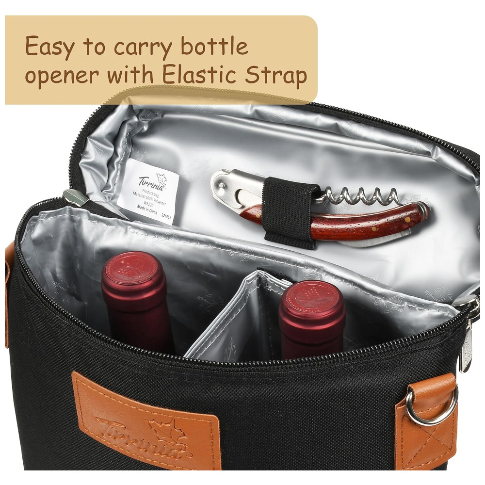 Tirrinia Bolsa Térmica Para Transporte de Vinhos até 2 Garrafas com Alça Ajustável Preta