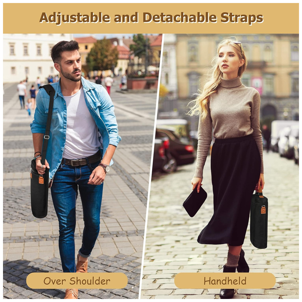 DESIGN PORTÁTIL Alça robusta e alça de ombro ajustável com fivela de aço inoxidável para esta bolsa de transporte de vinho para ajudá lo a transportar seu vinho para qualquer lugar. Excelente para transportar vinho para festas, jantares vínicos, restaurantes, festas na piscina ou na praia, piqueniques, concertos e eventos desportivos.