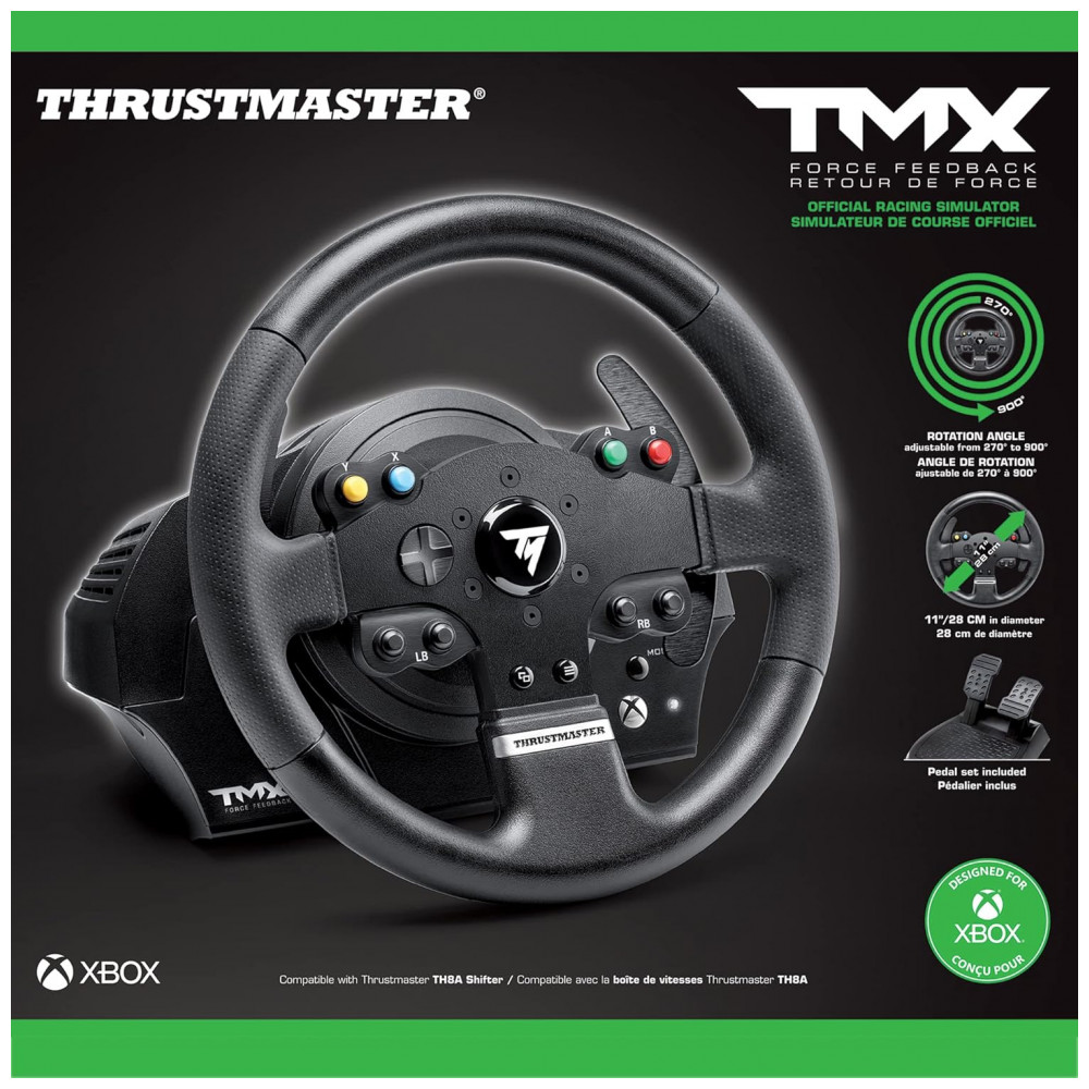 TMX IMERSÃO E REALISMO EM JOGOS DE CORRIDA NO XBOX ONE E PC Os fãs de simuladores de corrida vão adorar o feedback de força silencioso e responsivo do volante, para maior imersão nos jogos com sensações incrivelmente próximas das condições do mundo real. O TMX foi criado com diferentes tipos de pilotos em mente seu design ergonômico e a gama de tecnologias incorporadas ao volante o tornam totalmente adaptável a todos os estilos de jogos de corrida Rally, F1, NASCAR e até GT.