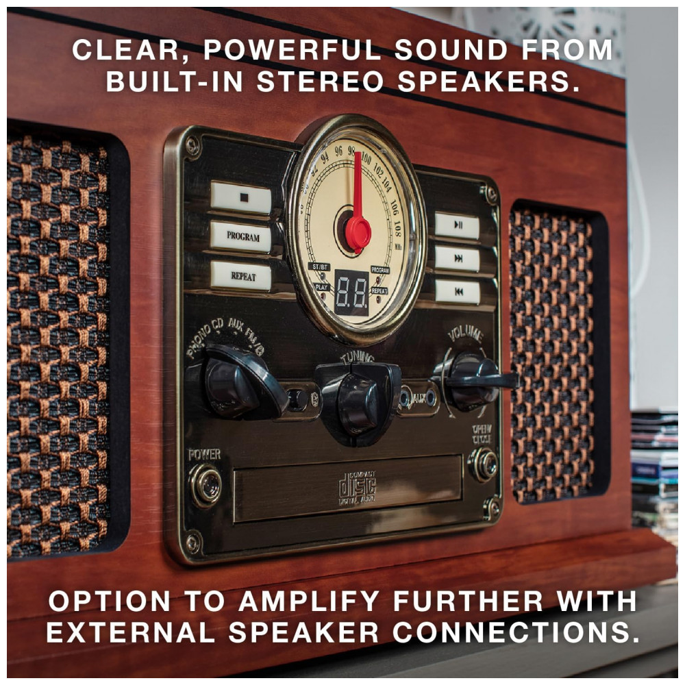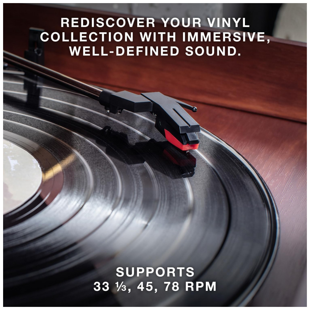 O toca discos com toca discos acionados por correia de 3 velocidades 33 1, 3, 45, 78 RPM reproduz todos os seus discos de vinil e álbuns favoritos