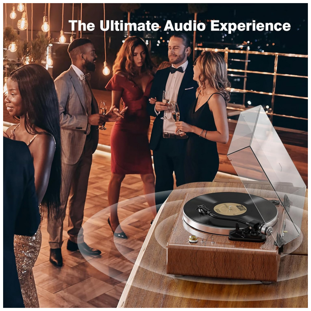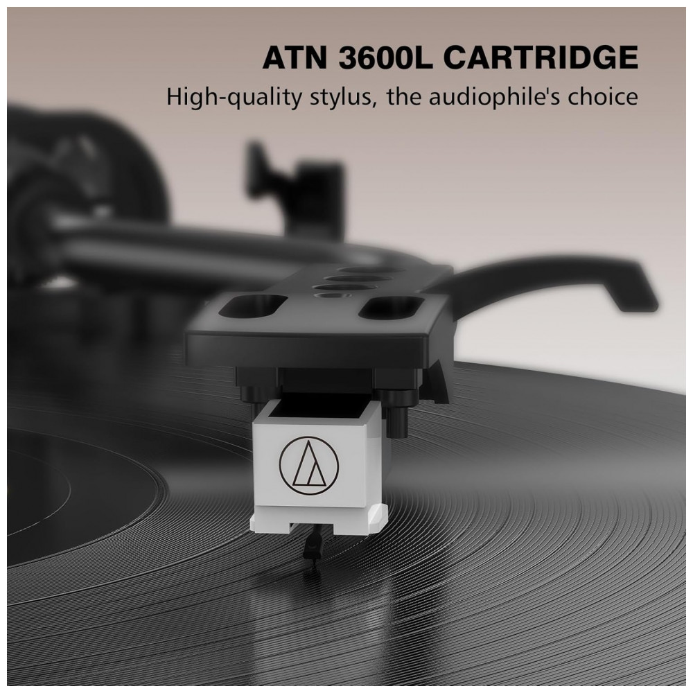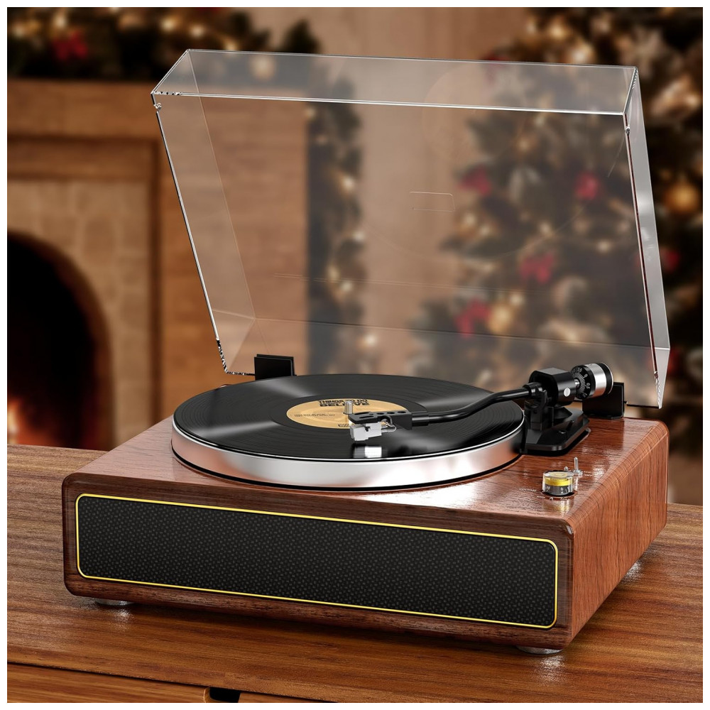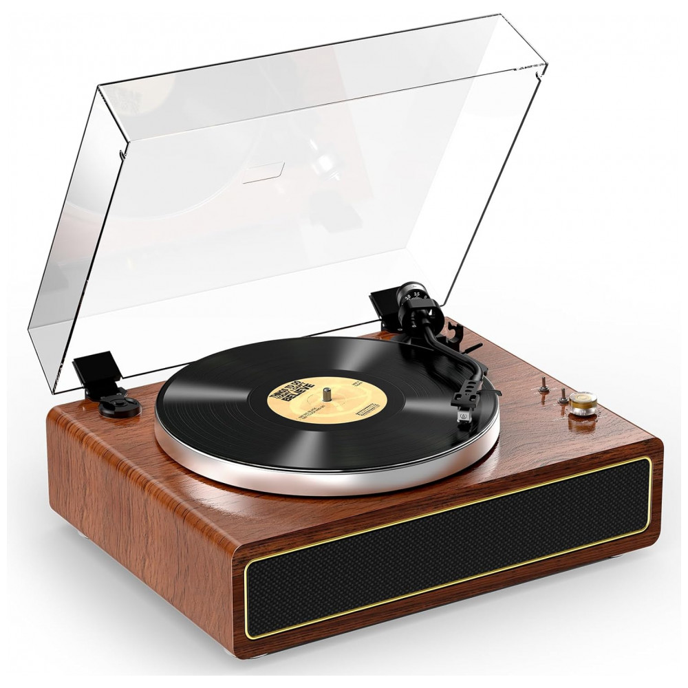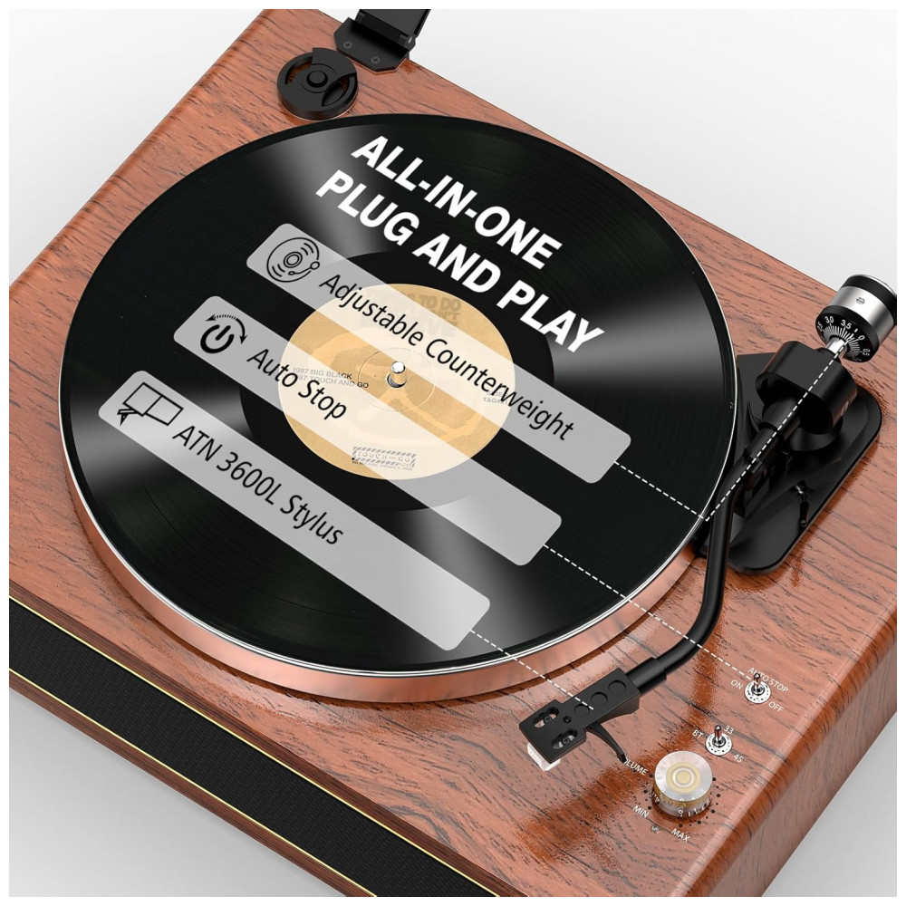 Este toca-discos all-in-one oferece reprodução sem fio, entrada Aux-in, saída RCA, velocidades de 33 e 45 RPM e parada automática. Possui 4 alto-falantes integrados – 2 alto-falantes médio graves e 2 tweeters, proporcionando som estéreo de alta fidelidade. O contrapeso ajustável garante que a agulha esteja equilibrada e bem posicionada no sulco do disco, evitando pulos e distorções. A cápsula magnética ATN3600L rastreia os sulcos dos discos com precisão, garantindo qualidade sonora pura. Com várias opções de reprodução, é possível conectar passivamente ou ativamente caixas de som, além de dispositivos externos como smartphones. Fácil de usar, o Toca-discos WOCKODER é uma escolha versátil para audiófilos experientes ou iniciantes, combinando o som nostálgico do vinil com recursos modernos.