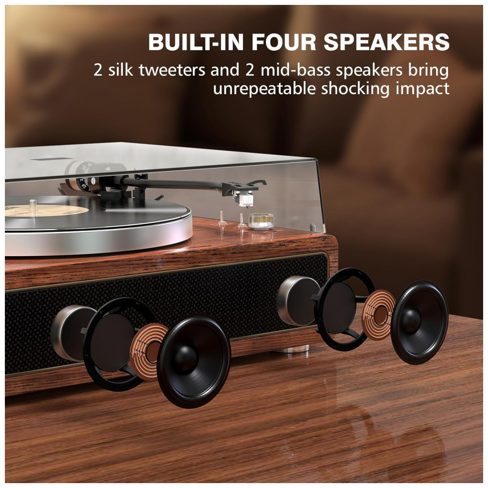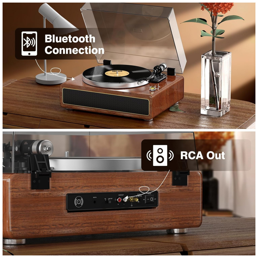 Toca-discos All-in-One com Alto-falantes Integrados e Suporte para Reprodução Sem Fio – Autostop e Velocidade de 33/45 RPM – WOCKODER
