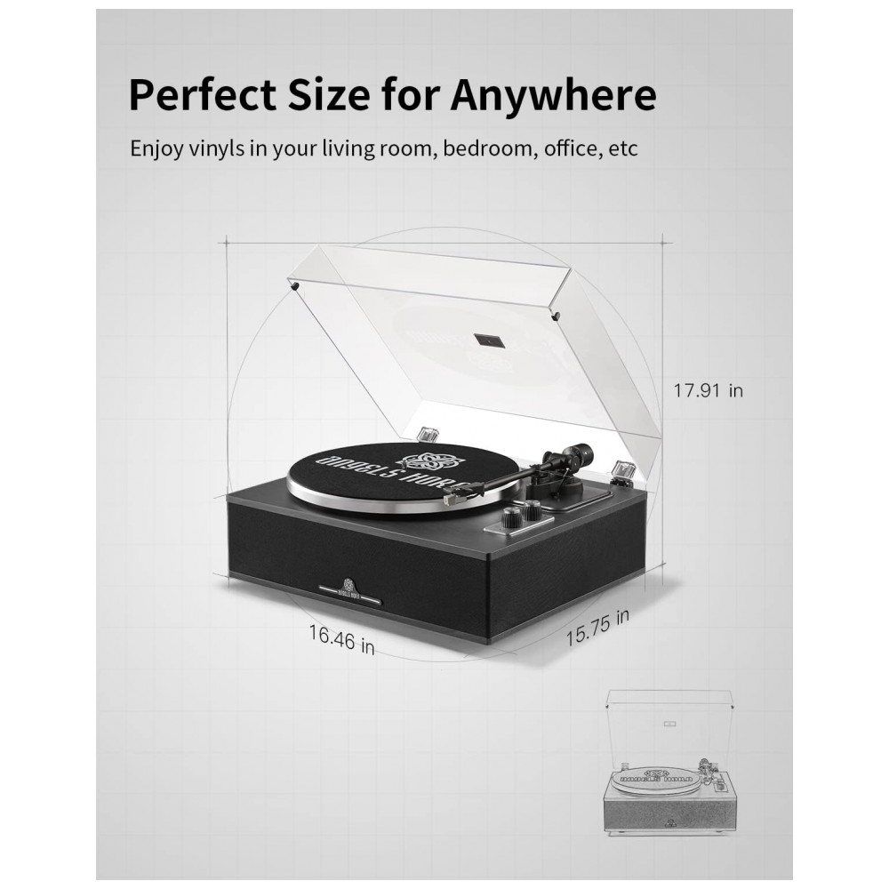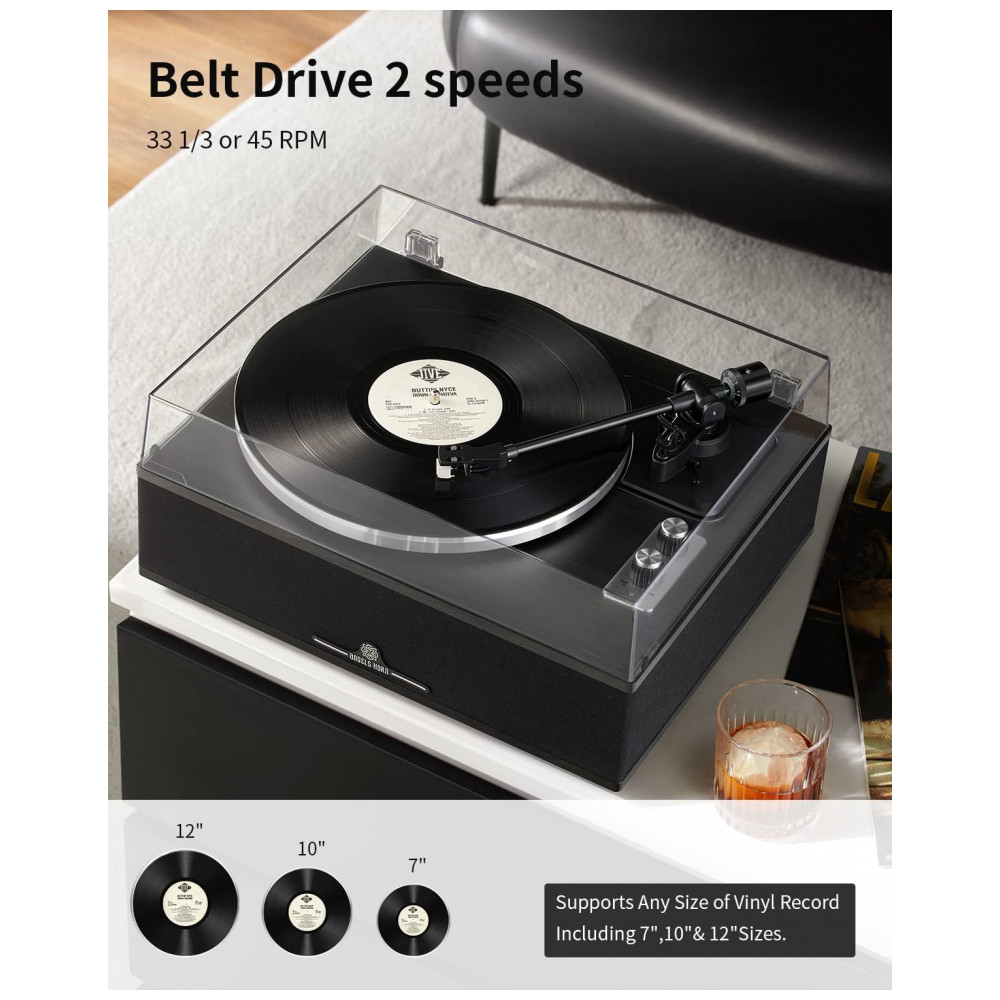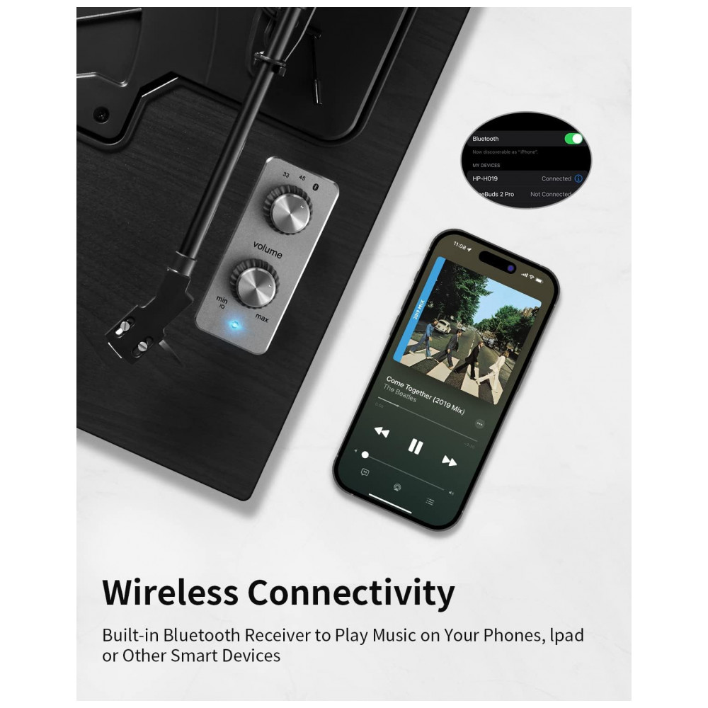 Toca-discos Bluetooth ANGELS HORN de Vinil de Alta Fidelidade de 2 Velocidades com Alto-Falantes Integrados e Cápsula Magnética AT3600L – Edição Cláss