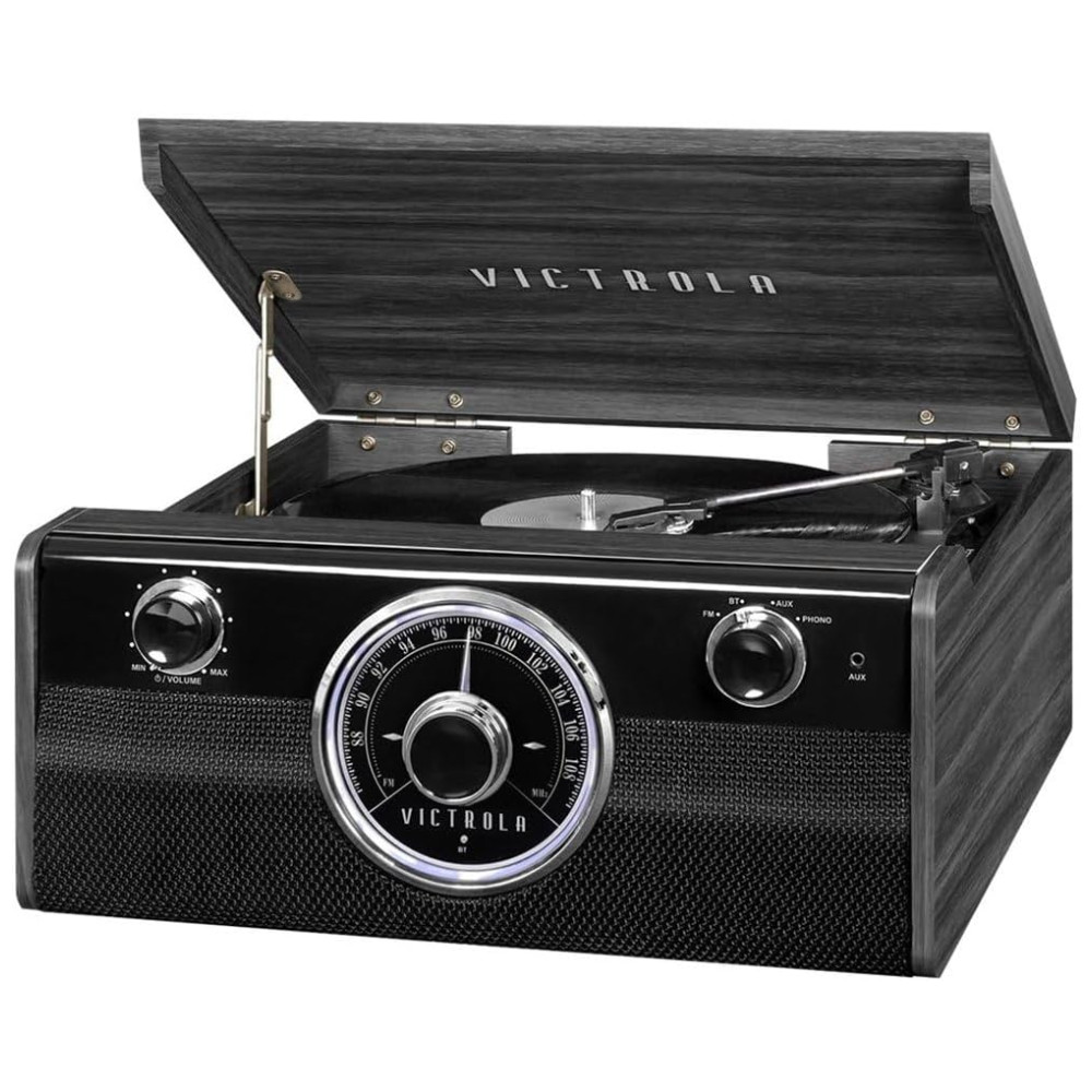 Toca Discos Central Multimídia 4 em 1 com Bluetooth e Alto-Falantes Integrados Victrola Metropolitan Cinza
