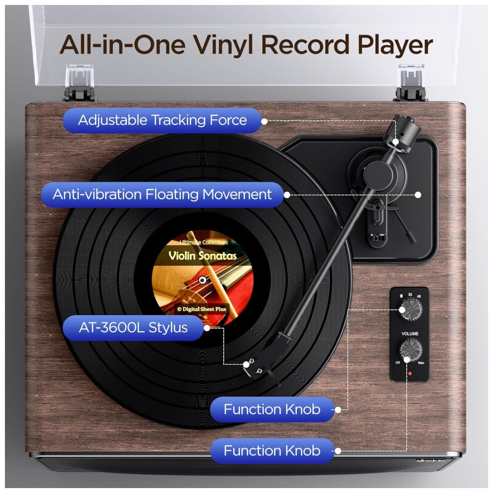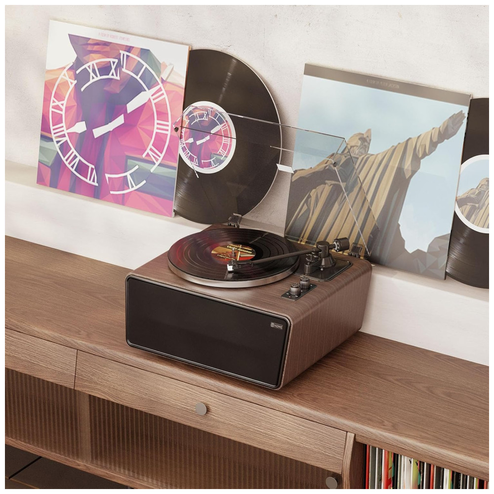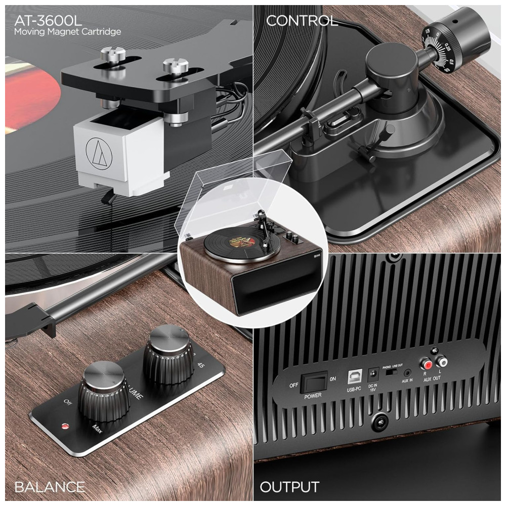 O toca-discos All in One da XJ-HOME é a escolha perfeita para os amantes de vinil! Com a capacidade de reproduzir discos de vinil em velocidades de 33 e 45 RPM, este aparelho oferece uma qualidade sonora incrível através de seus 4 alto-falantes embutidos, proporcionando graves poderosos e agudos nítidos. Além disso, você pode transmitir música sem fio via Bluetooth ou usar a entrada Auxiliar para conectar outros dispositivos. Para um som ainda mais imersivo, basta conectar um alto-falante externo via cabo RCA. Com saídas Phono e Line, este toca-discos é versátil e pode ser utilizado com ou sem um equalizador Phono. A cápsula magnética AT3600L MM garante uma reprodução precisa e de alta definição, enquanto o contrapeso ajustável elimina ruídos e distorções, proporcionando uma experiência auditiva rica e calorosa. Além disso, é possível gravar suas músicas favoritas em formato MP3 conectando o toca-discos ao computador via USB. Com um design elegante que combina madeira e metal, este toca-discos se destaca como um item de decoração para sua casa. Um presente perfeito para os amantes de música!