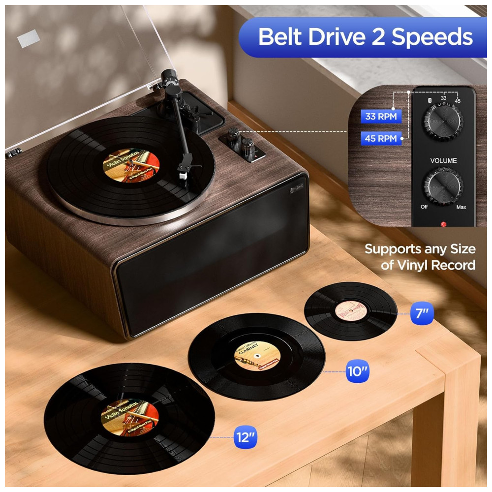 Característica Especial: Velocidade Ajustável, Alto-falante Integrado, Entrada Auxiliar, Saída RCA, Design de Correia de Transmissão Automática,