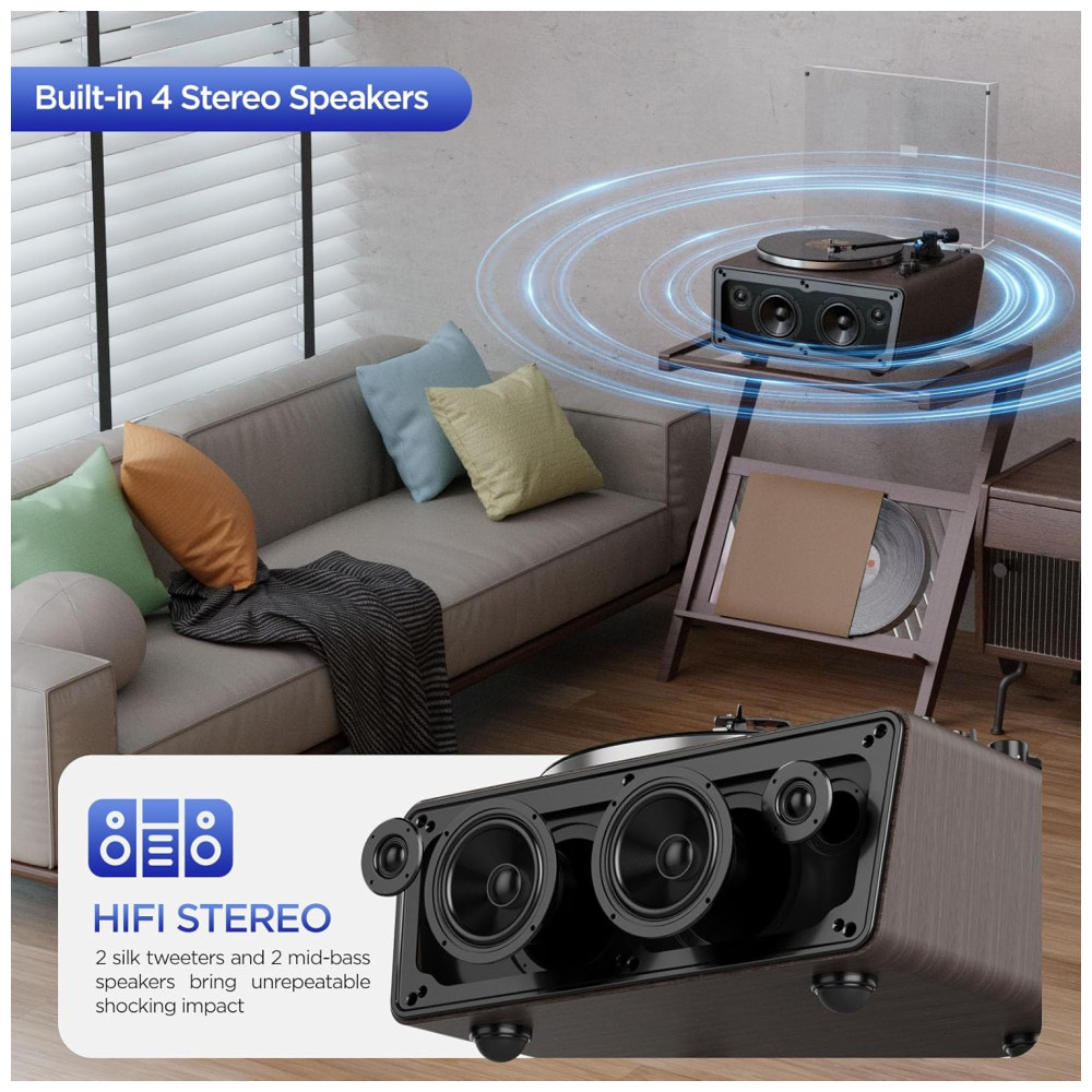 Toca-discos de vinil All in One XJ-HOME Bluetooth integrado 4 alto-falantes estéreo Pré-amplificador Phono Alta Fidelidade