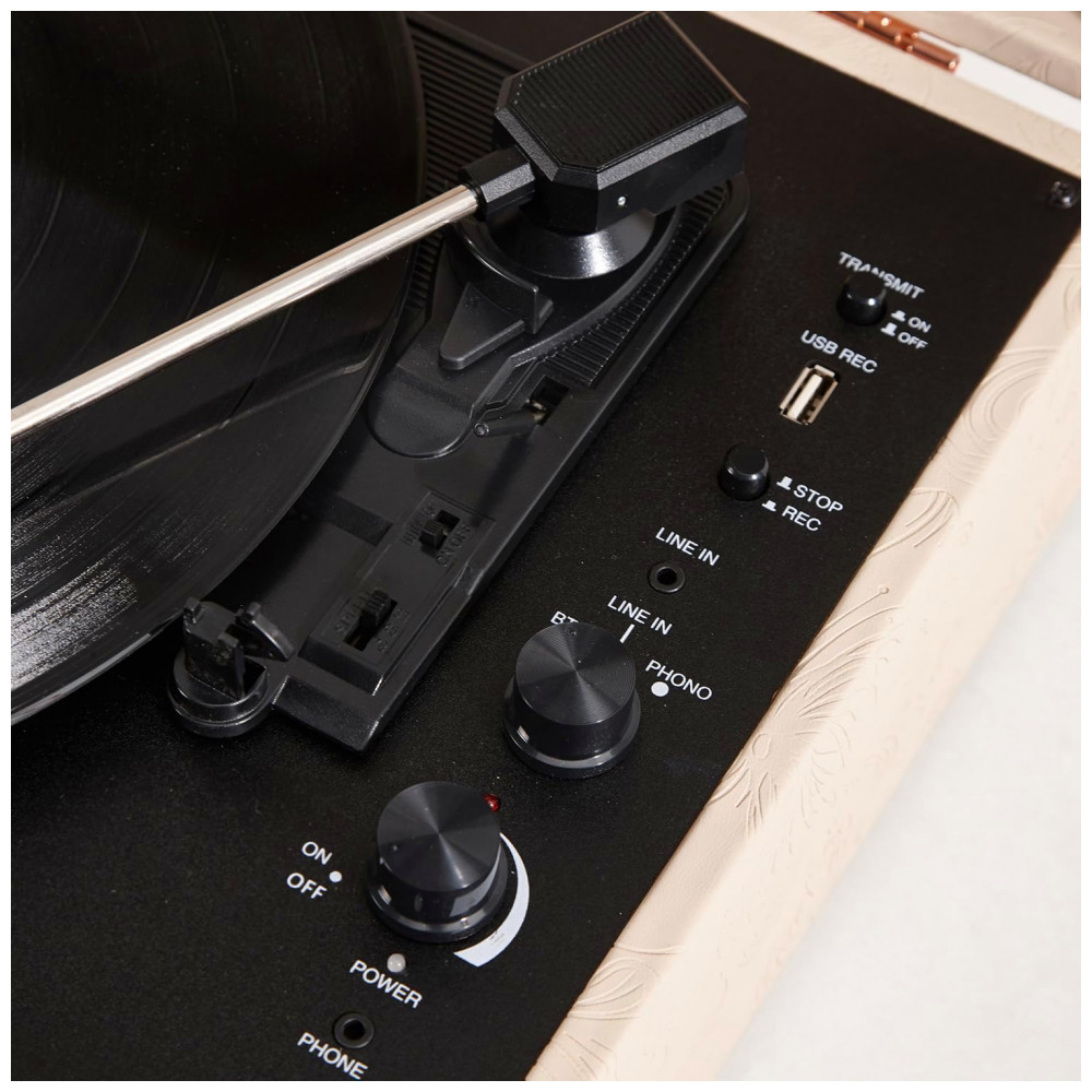 O toca-discos tudo-em-um da Arkrocket apresenta design com Cápsula Magnética de Movimento Rocket e toca-discos de 3 velocidades por correia, oferecendo uma experiência auditiva completa e de alta qualidade. Com funcionalidades de entrada e saída Bluetooth, proporciona streaming sem fio conveniente e conectividade a dispositivos externos, facilitando a audição de música de diversas fontes. Possui alto-falantes estéreo integrados, oferecendo uma experiência de áudio imersiva sem a necessidade de equipamentos adicionais. Com acabamento de luxo em couro e logotipo dourado, adiciona elegância e sofisticação a qualquer ambiente ou decoração residencial. Da exclusiva série Deluxe Edition, apresenta artesanato superior em materiais e tecnologia, garantindo qualidade excepcional e atenção aos detalhes em todos os aspectos do produto.