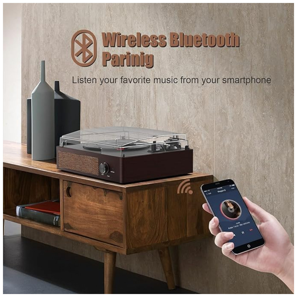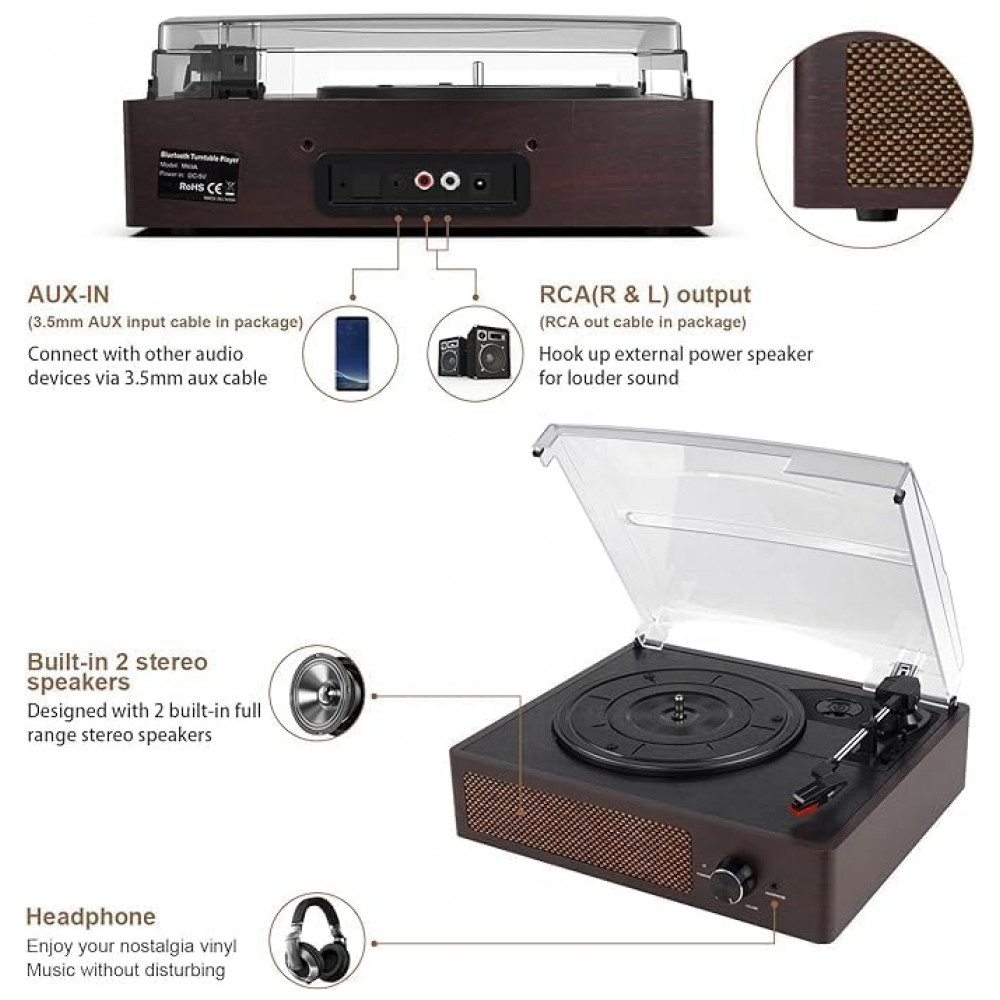 Toca-Discos de Vinil Bluetooth BeltDriveTurntable com Alto-Falantes Integrados Saída RCA AUX e Entrada para Fone de Ouvido Mersoco