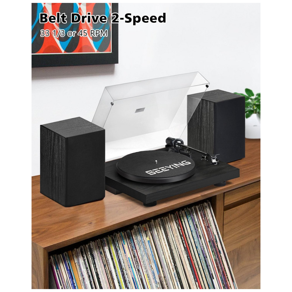 Os alto-falantes estéreo HiFi para toca-discos de vinil vêm com alto-falantes de estante de 218W, que produzem um som de estúdio equilibrado com graves profundos, baixa distorção e qualidade incrível. O pré-amplificador integrado permite que você se conecte aos seus alto-falantes ou sistema estéreo via conectores RCA. Os toca-discos para vinil com alto-falantes incluem cápsula magnética e agulha de alta qualidade, reproduzindo detalhes e realismo encontrados em discos, produzindo áudio rico, quente e com excelente clareza de som. Transmissão sem fio e gravação via USB – permite ouvir discos via smartphone, tablet, computador ou outros dispositivos compatíveis. Suporta codificação USB para PC, convertendo discos de vinil em arquivos digitais MP3 via computador e reprodução. Toca-discos Premium – Contrapeso ajustável, essencial para qualquer toca-discos clássico, permite ajuste independente e preciso da força de rastreamento da agulha. Prato de ferro produz massa inercial uniforme, juntamente com o braço de tom de alumínio equilibrado estaticamente, reduzindo significativamente as vibrações do toca-discos. Aparência de Madeira Natural – Após uma instalação simples, este toca-discos vintage acionado por correia com 2 velocidades de 33 1/3 e 45 RPM combinará perfeitamente com seus móveis. Não ocuparão muito espaço na sala e não entrarão em conflito com o restante da decoração de sua casa.