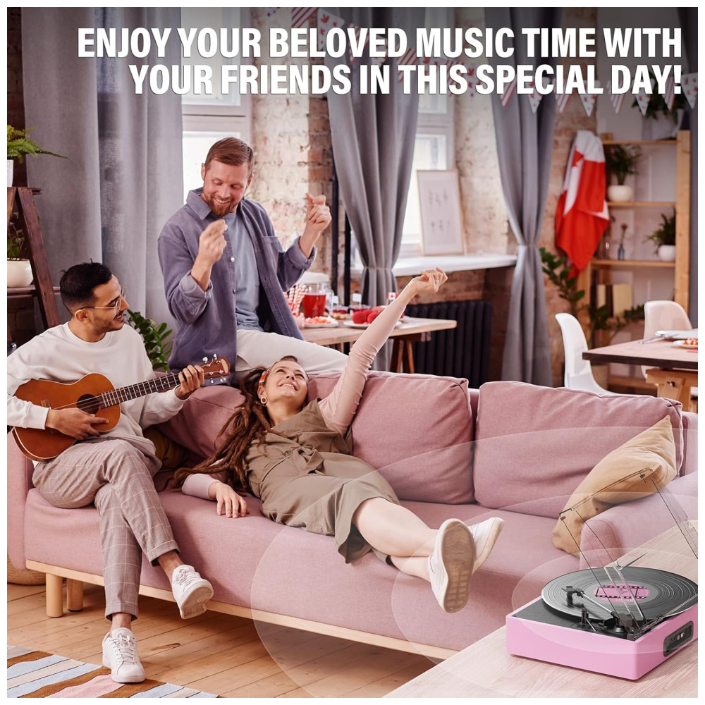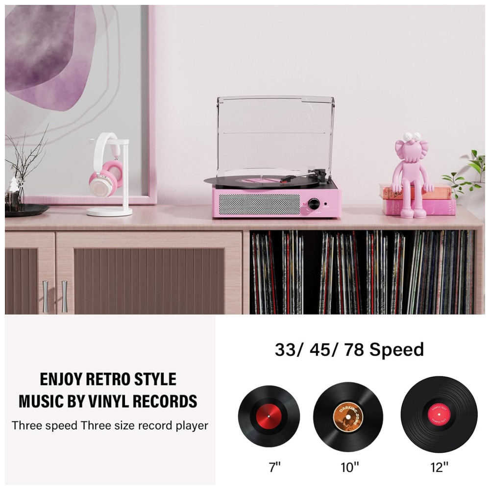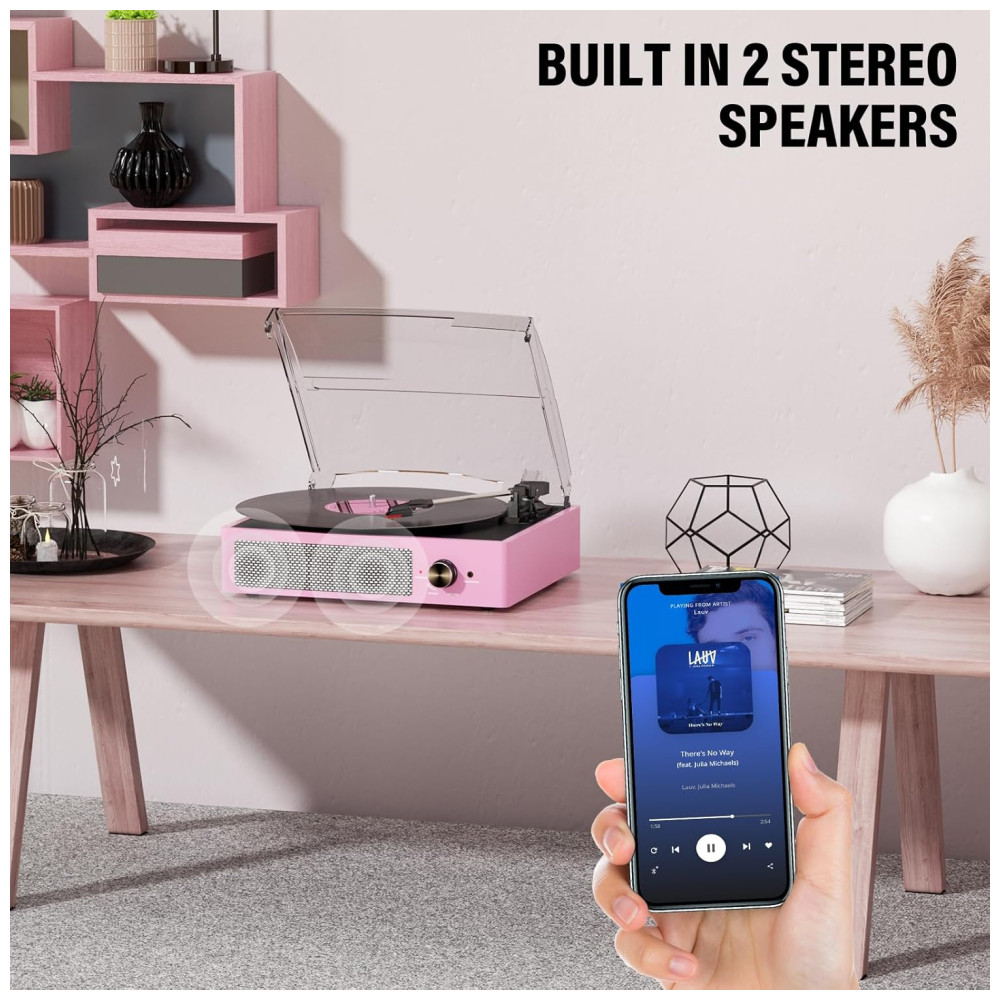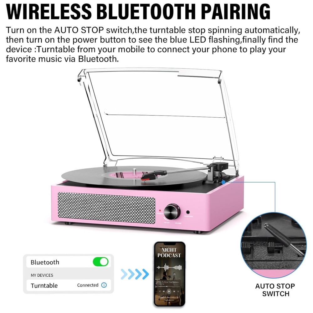 Toca-discos de Vinil com 2 Alto-falantes Estéreo Vintage e Bluetooth Rosa Pálidocotsoco