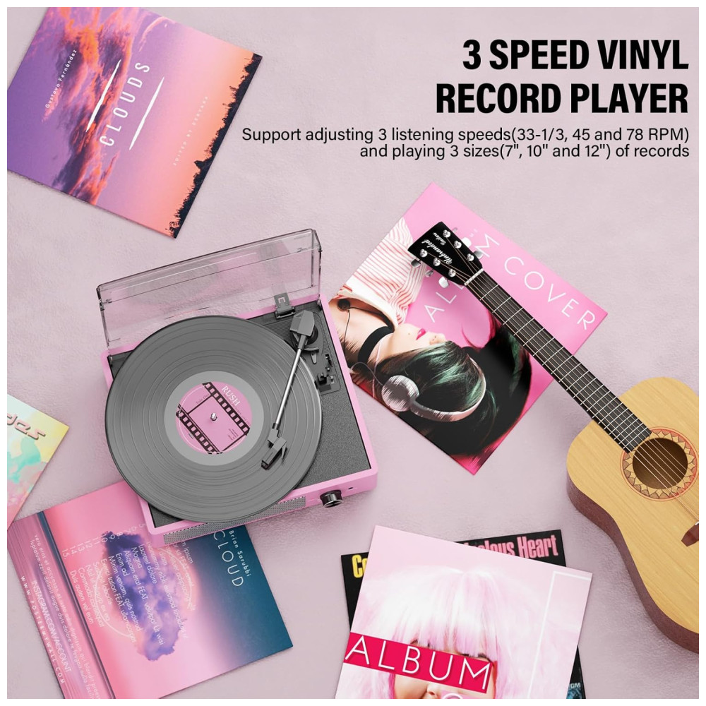 Nome do Modelo: Toca-discos de Vinil Vintage, Cor Rosa