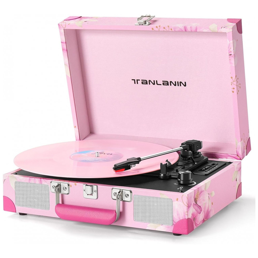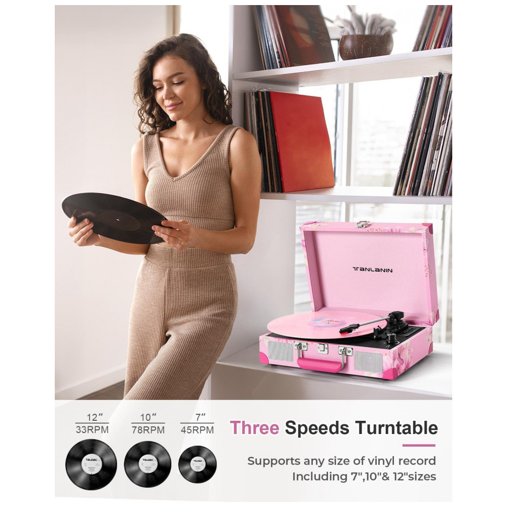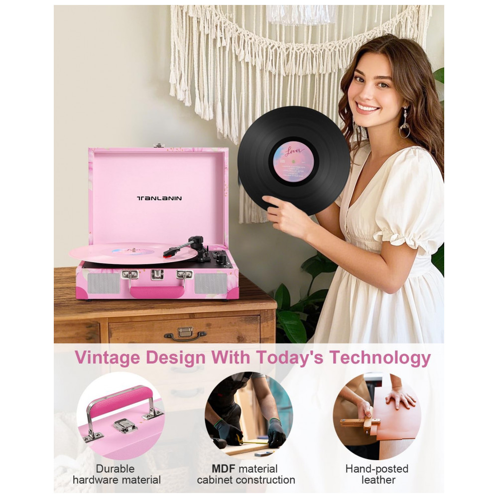 Toca-discos de Vinil com Alto-falantes Embutidos e Gravação USB Vintage 3 Velocidades Bluetooth PortátilTANLANIN