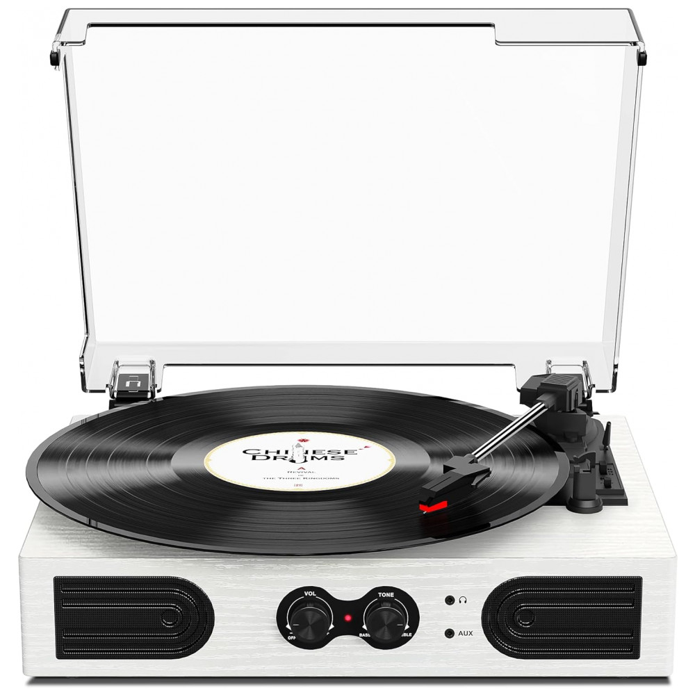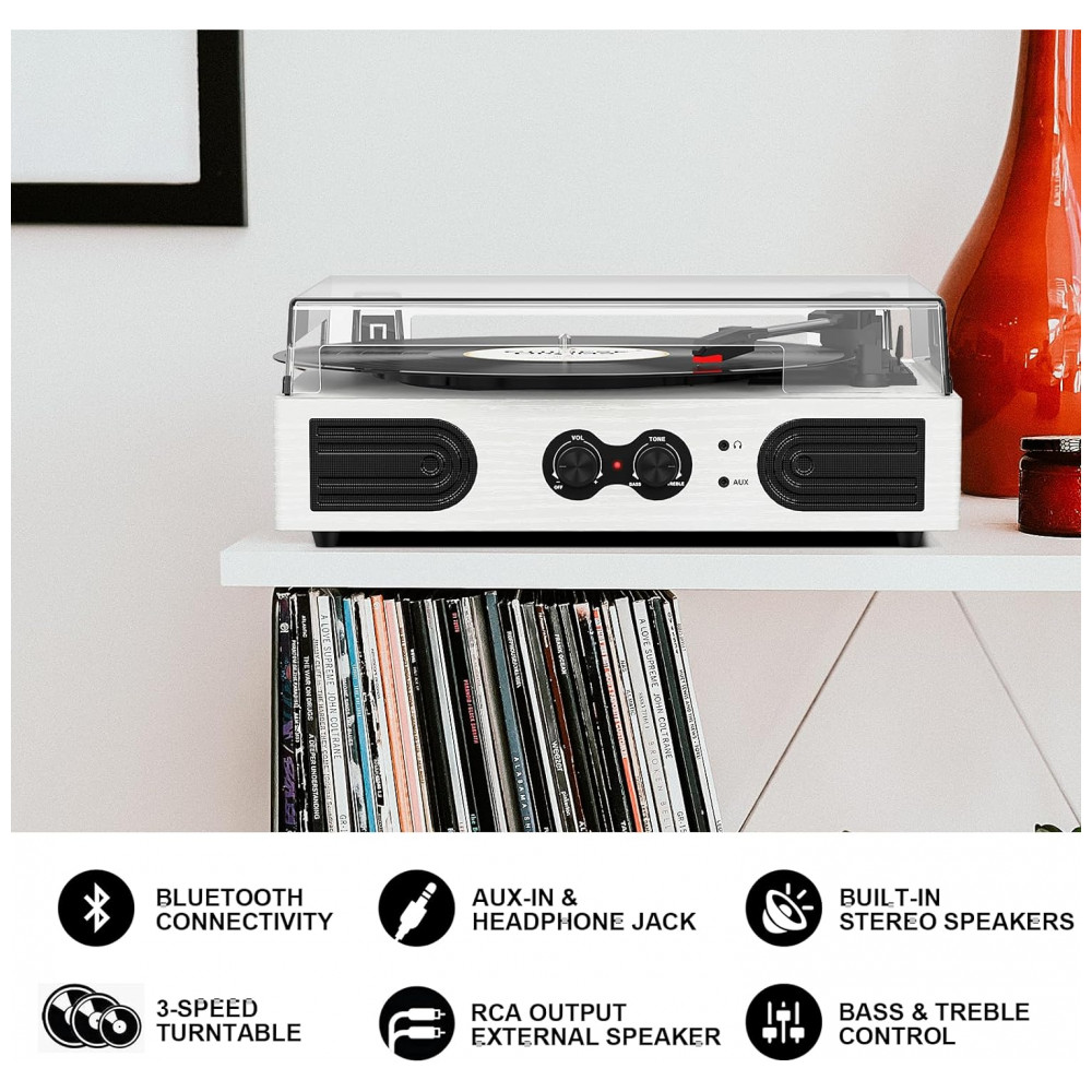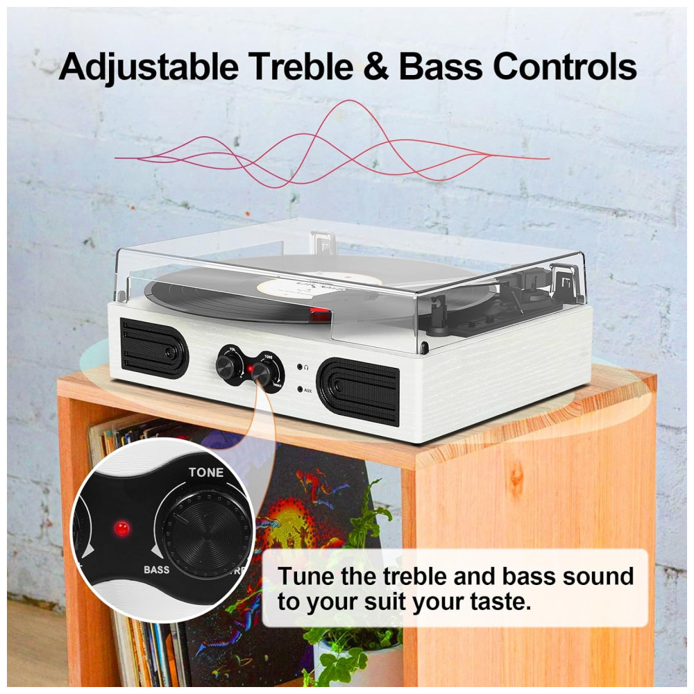 Toca Discos de Vinil com Alto Falantes Estéreo Integrados e Ajuste de Graves TANLANIN Branco