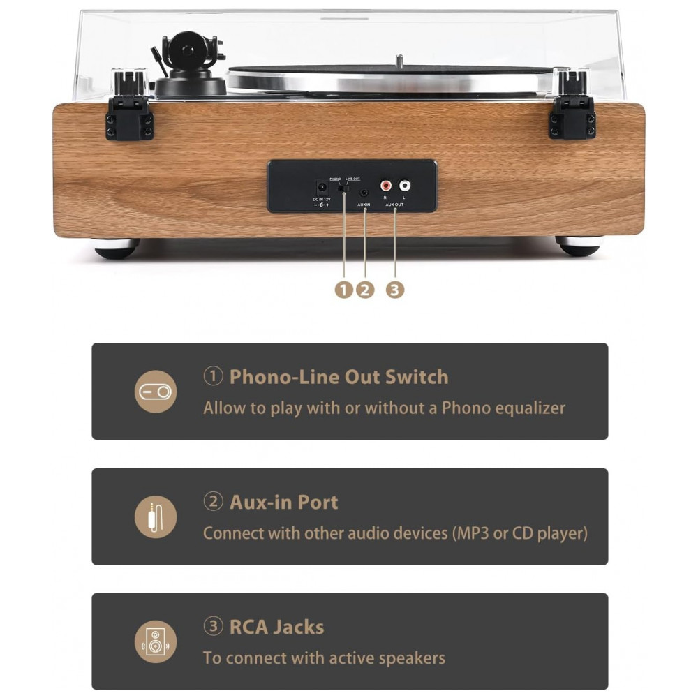 Toca-Discos de Vinil com Alto-falantes HiFi Integrados Bluetooth Belt Drive para Discos de Vinil com Cápsula Magnética Seeying