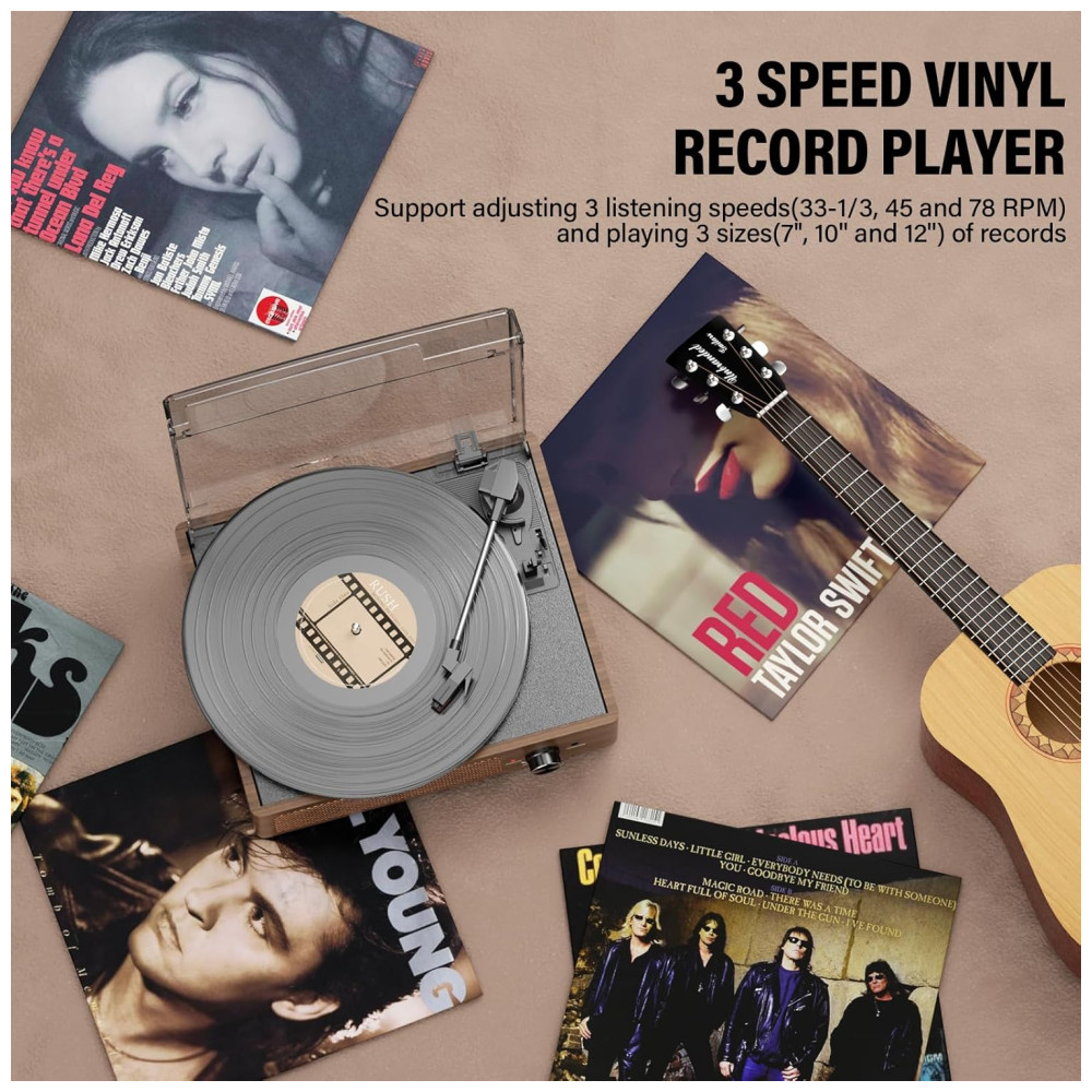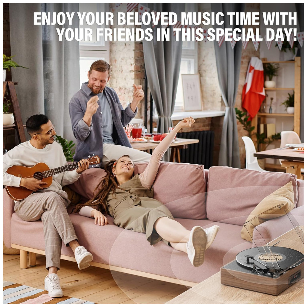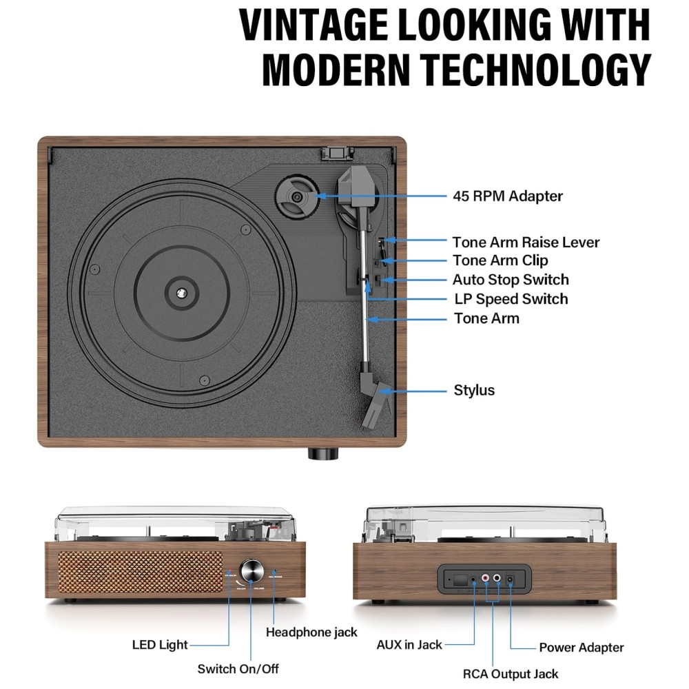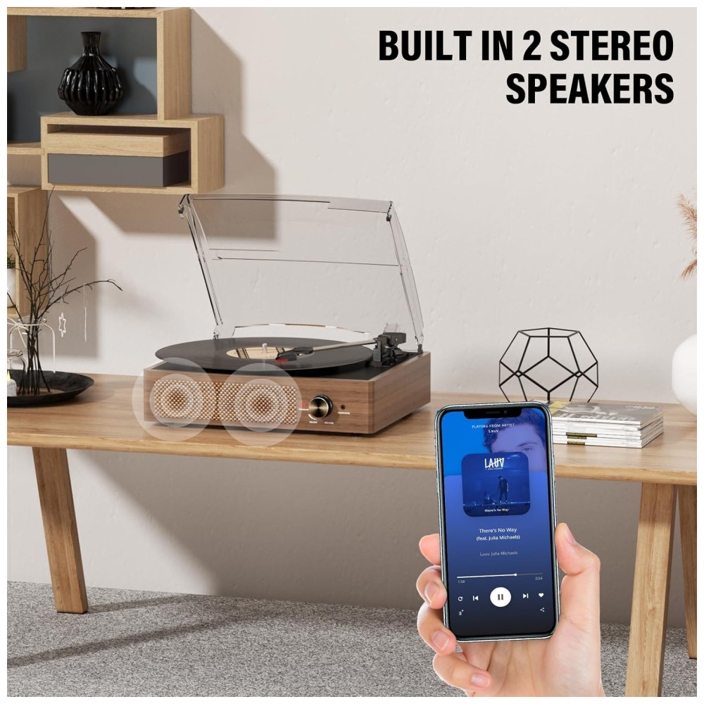 Experimente a incrível fusão entre moda e retrô com o Toca-discos para Vinil da cotsoco! Com entrada Bluetooth, AUX, saída RCA e entrada para fone de ouvido, permite diversas experiências musicais. Equipado com dois alto-falantes estéreo embutidos, transmissão sem fio via Bluetooth, reprodução via AUX e possibilidade de escuta privada com fones de ouvido. O sistema antivibração por correia da base do toca-discos reduz vibrações, protegendo seus discos de vinil. Conecte-se facilmente a dispositivos Bluetooth e aproveite a estabilidade e rapidez da transmissão. Além disso, é possível conectar a caixas de som externas via RCA para uma qualidade sonora aprimorada. Crie um ambiente acolhedor em reuniões familiares ou relaxe sozinho ao som de sua coleção musical favorita. Presenteie alguém especial com este elegante toca-discos retrô, compatível com diferentes tamanhos e velocidades de discos. Adquira já o seu!