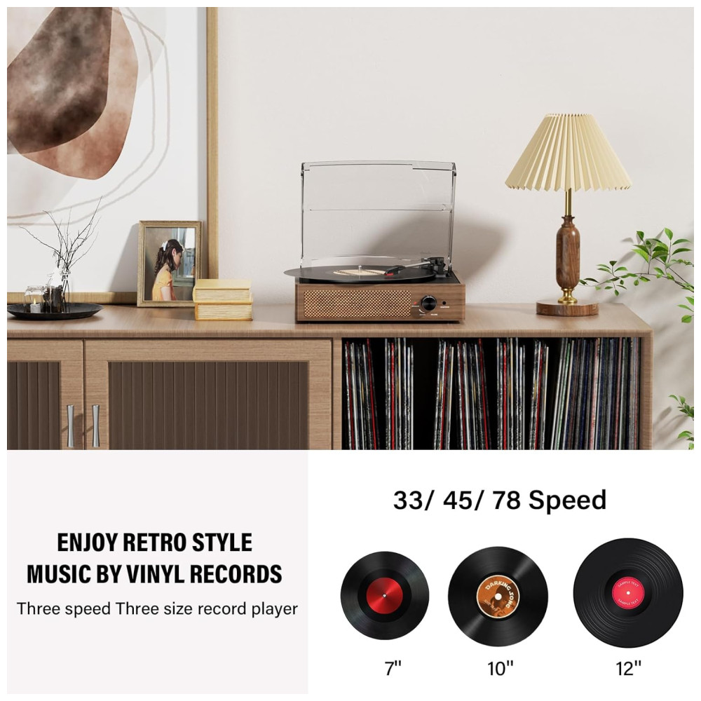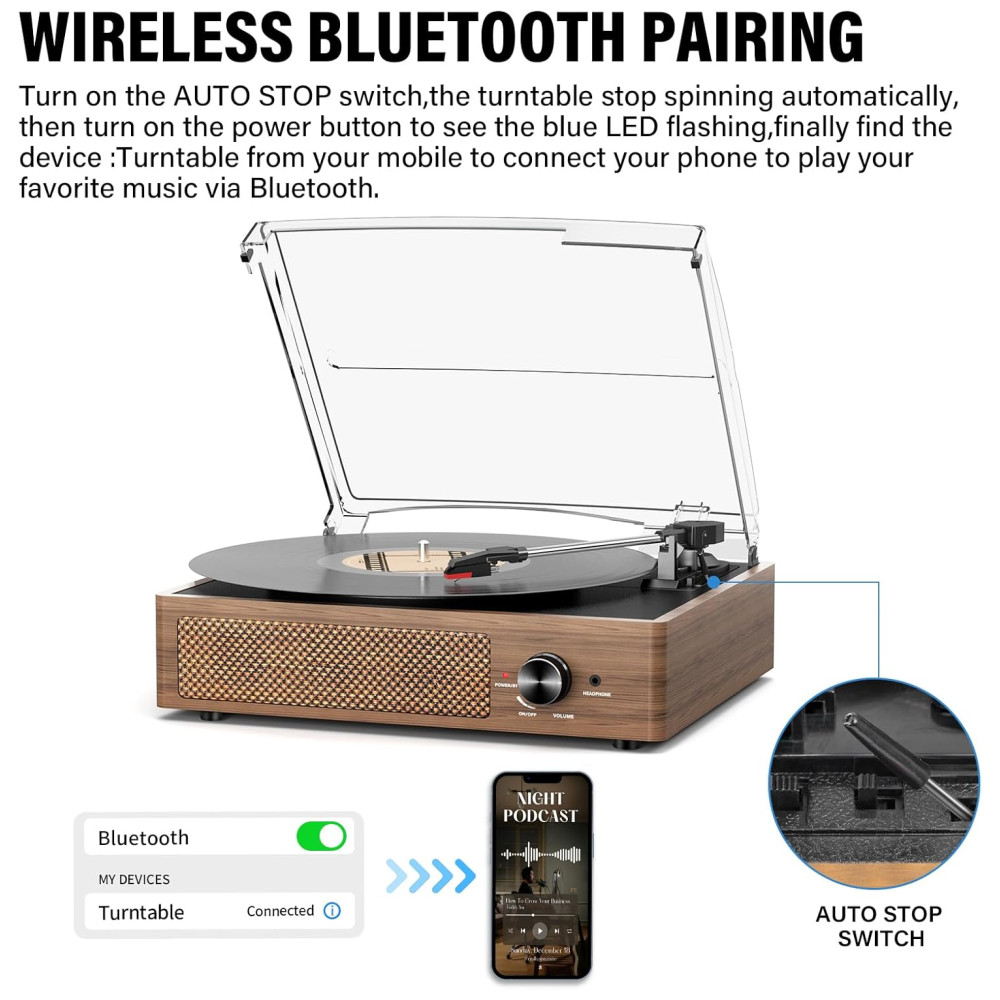 Toca-discos de Vinil com Bluetooth 2 Caixas de Som 3 Velocidades 3 Tamanhos Saída AUX Saída RCA Entrada para Fone de Ouvidocotsoco