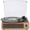 O Toca-discos de 3 velocidades com acionamento por correia possui uma agulha de diamante que reproduz discos de 33 1/3, 45 e 78 RPM. Com ajuste de parada automática, você pode relaxar enquanto a música para sozinha. Conecte seu celular via Bluetooth para reproduzir suas músicas digitais favoritas sem a necessidade de discos de vinil. As caixas de som embutidas criam um som estéreo de alta qualidade, tornando-o perfeito tanto para iniciantes quanto para amantes de música. Com um visual vintage em madeira, possui uma tampa protetora contra poeira que não interfere na reprodução. Além disso, o toca-discos possui saída de linha RCA e AUX, permitindo conectar dispositivos externos para uma experiência de audição mais intensa. Um presente perfeito que proporciona momentos relaxantes e uma atmosfera acolhedora em qualquer ambiente.