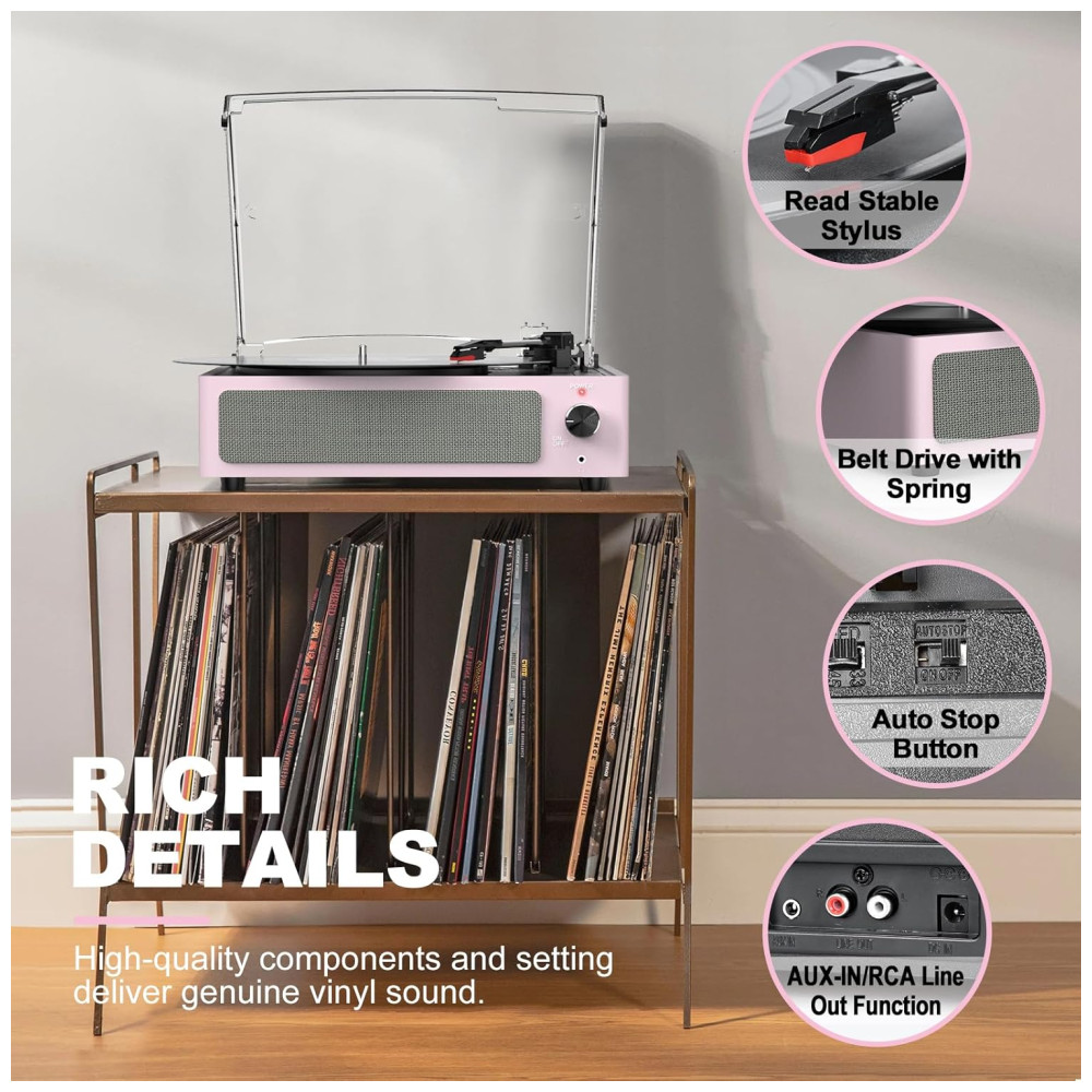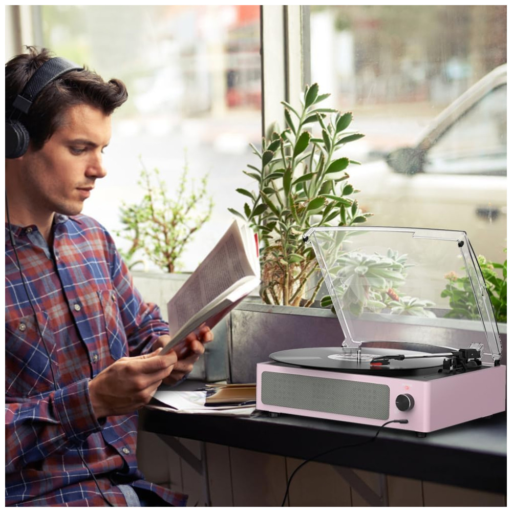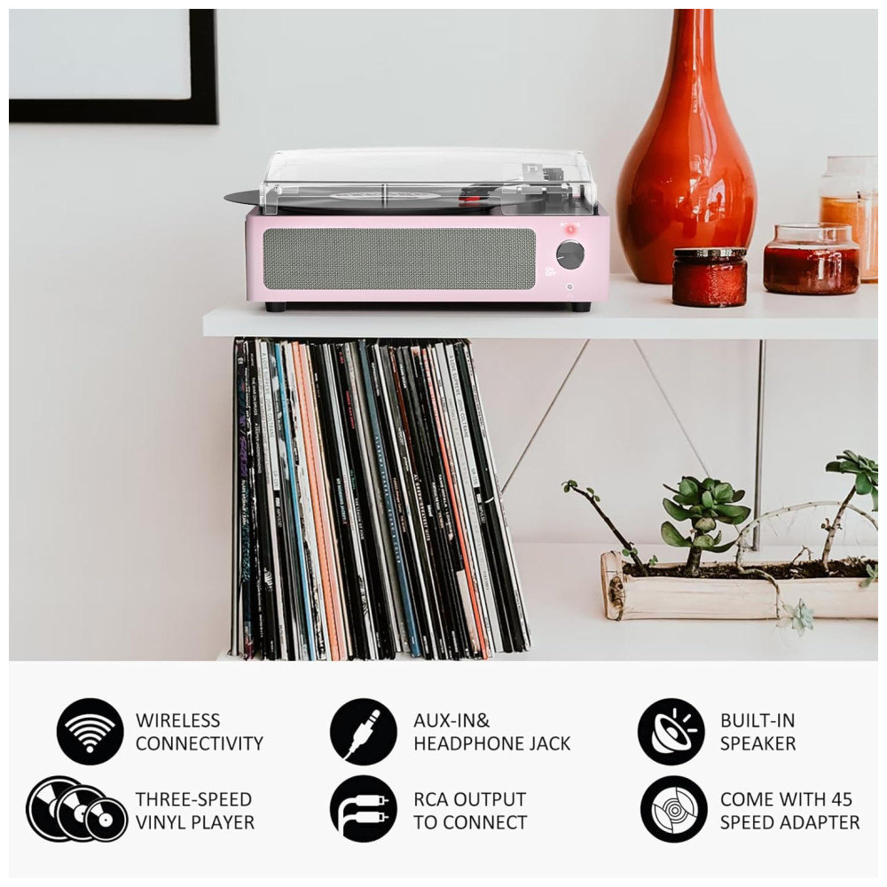 Toca-discos para Vinil com Alto-falantes Bluetooth Design Elegante em Rosa Claro – WOCKODER