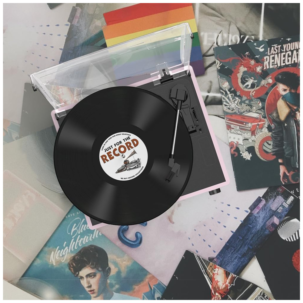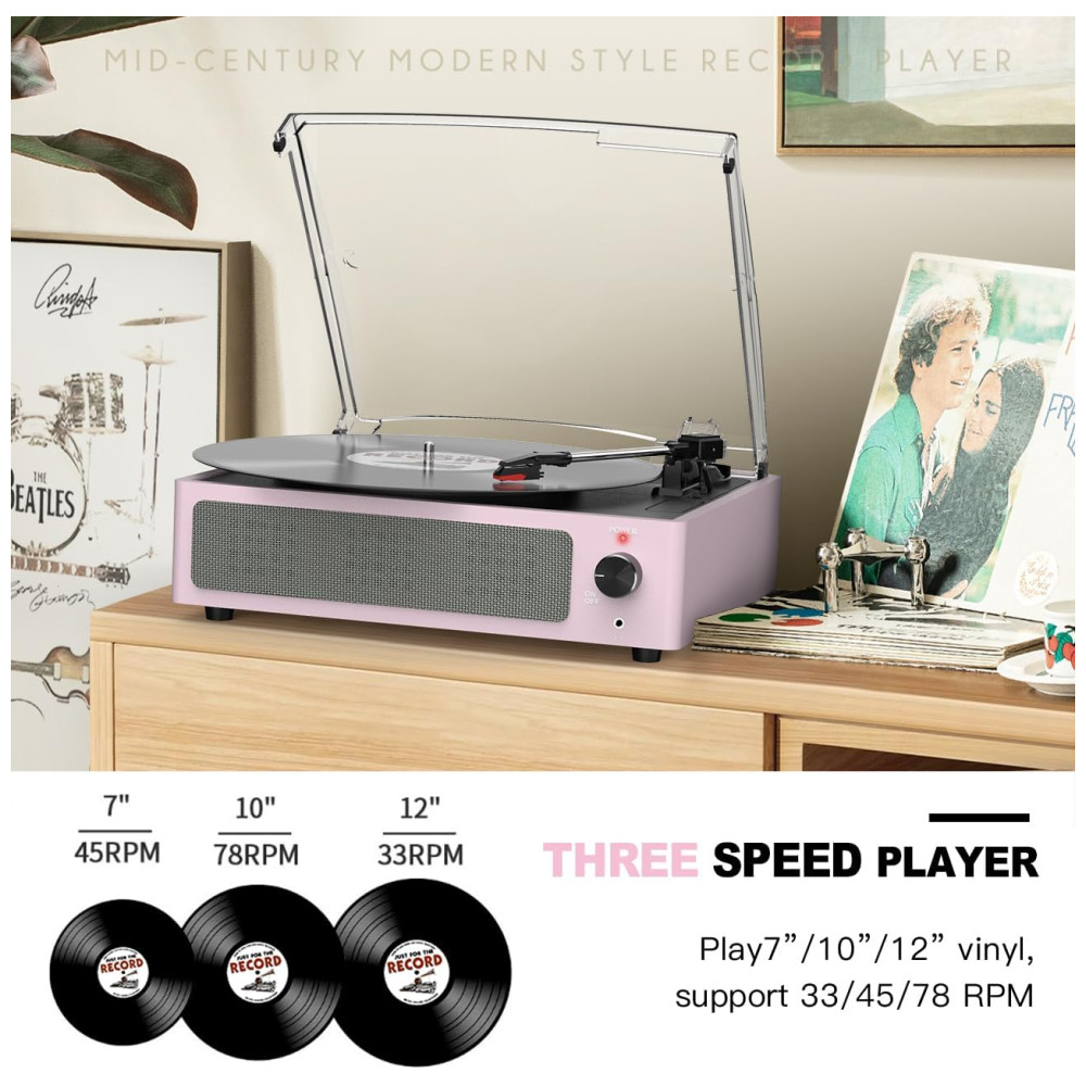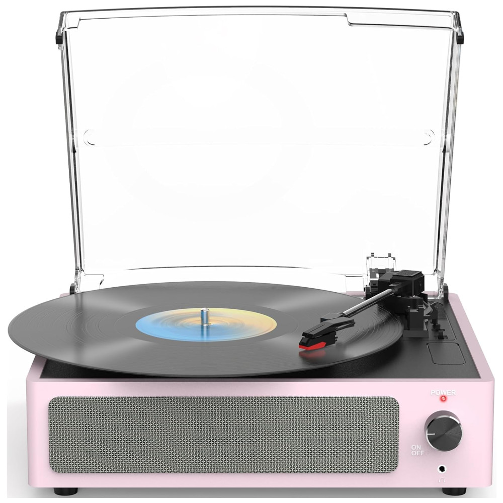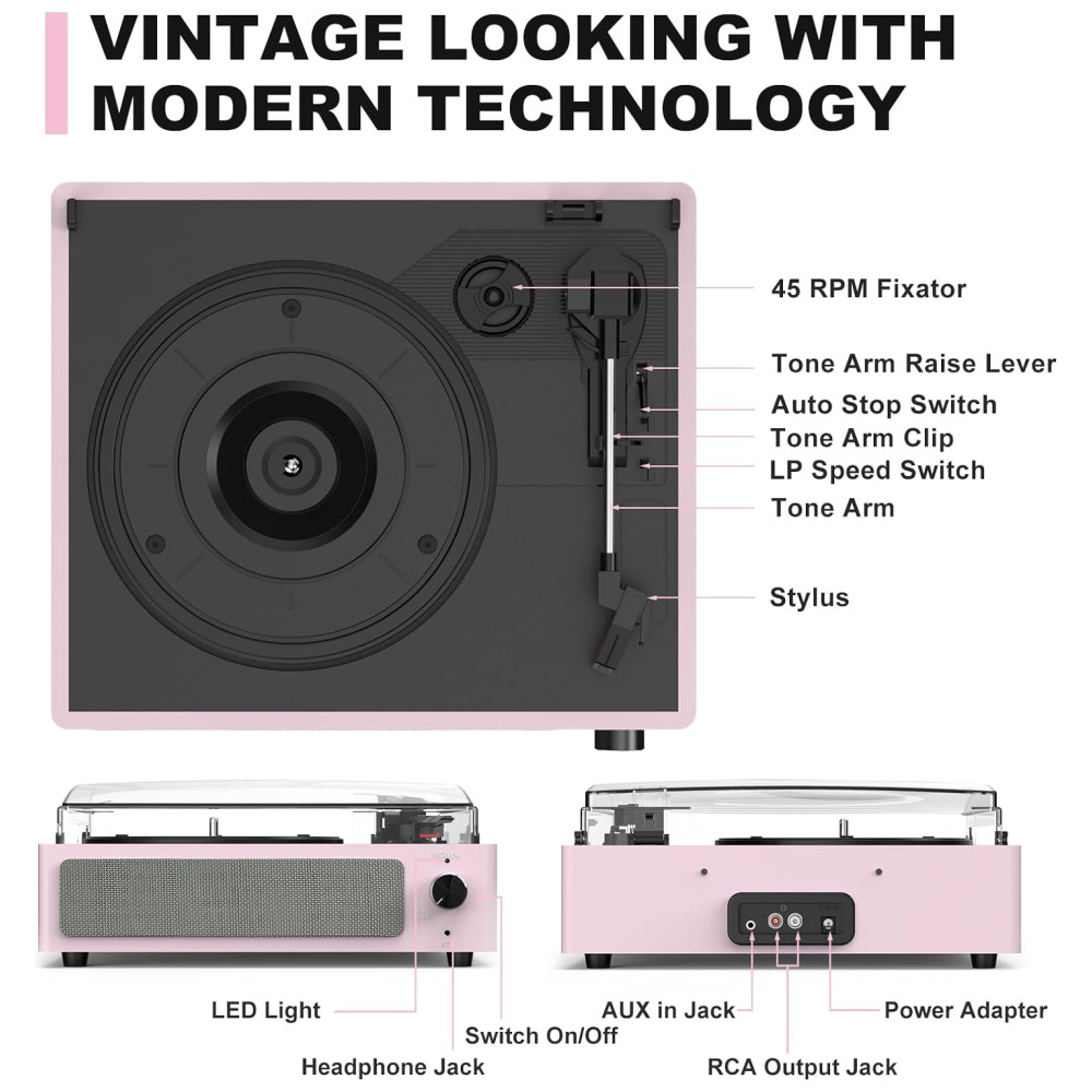 Toca-discos para Vinil com Alto-falantes Bluetooth Design Elegante em Rosa Claro – WOCKODER