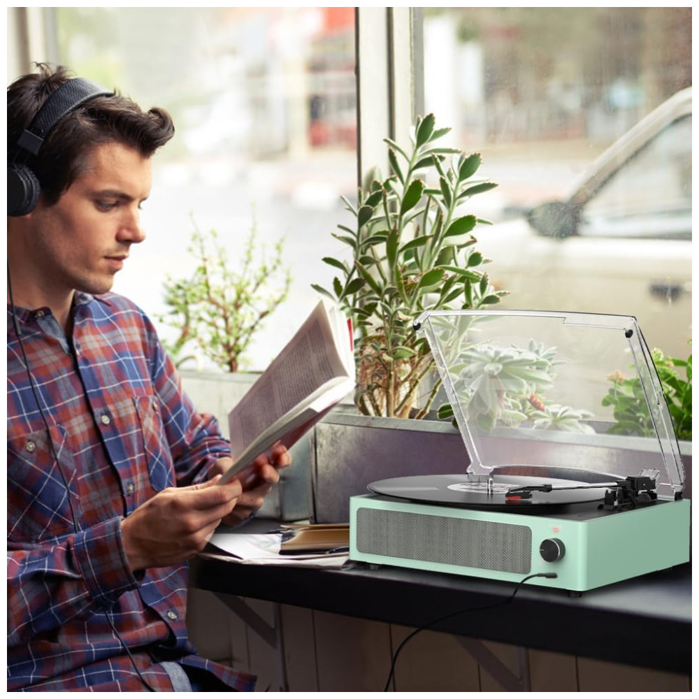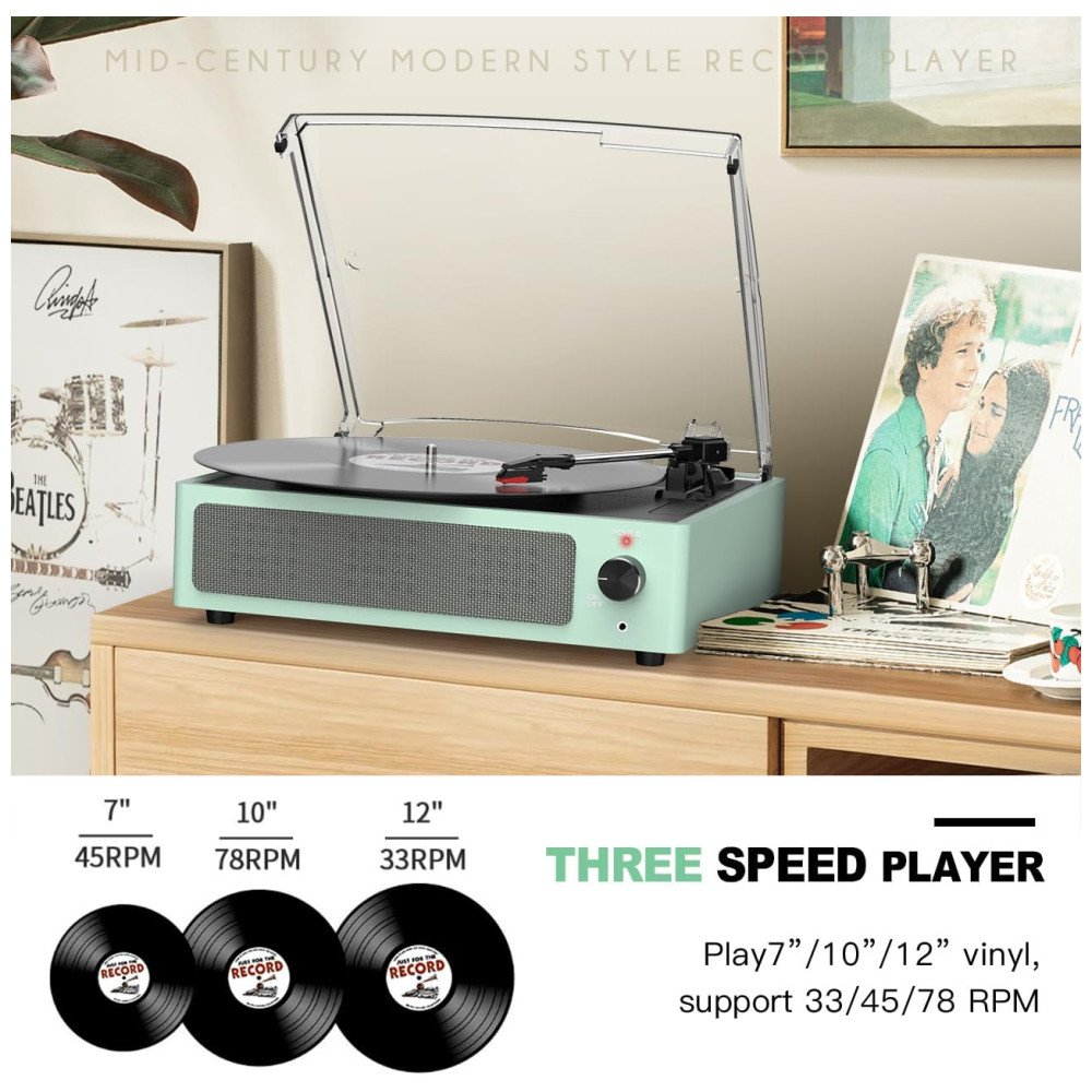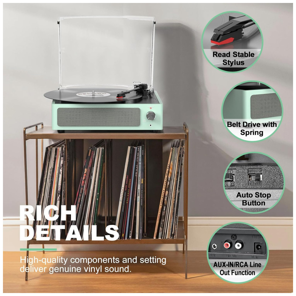 Toca-discos para vinil com alto-falantes Bluetooth e design vintage em Verde Claro – WOCKODER