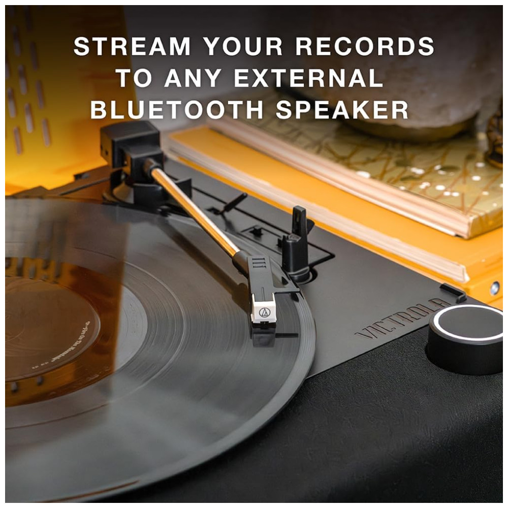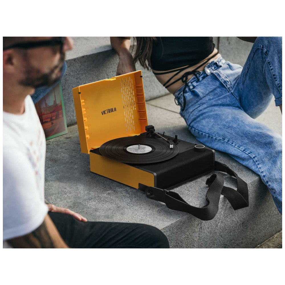 Toca Discos Portátil Revolution GO com Bluetooth 3 Velocidades e Alto-falantes Integrados Victrola VSC-750SB-CTR Amarelo