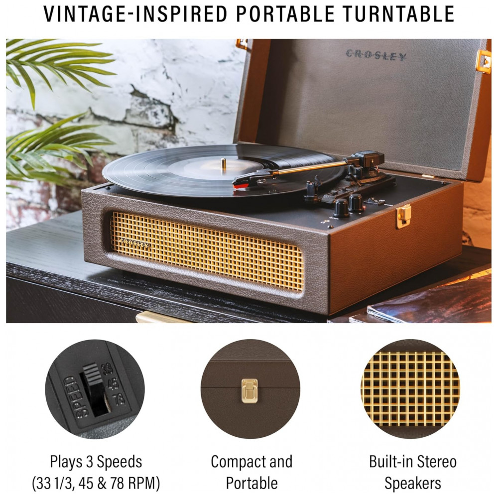 Toca-discos portátil vintage Crosley CR8017BCO Voyager com Bluetooth caixas de som embutidas