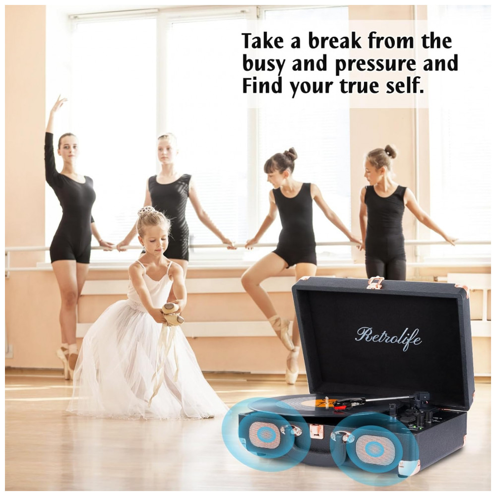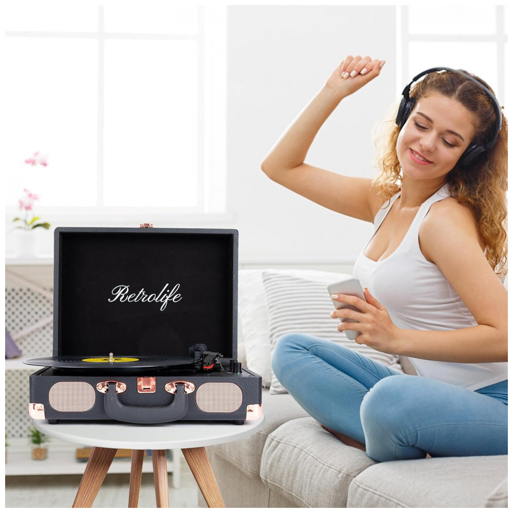 Toca-Discos Portátil Wireless em Maleta com Alto-Falantes Integrados – Estilo Retrô para Discos de Vinil em 3 Velocidades – Retrolife