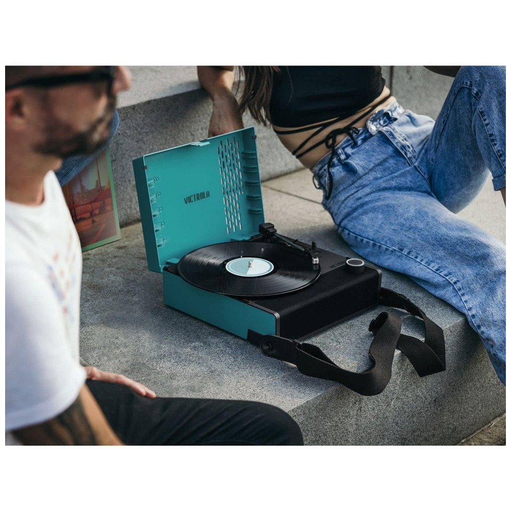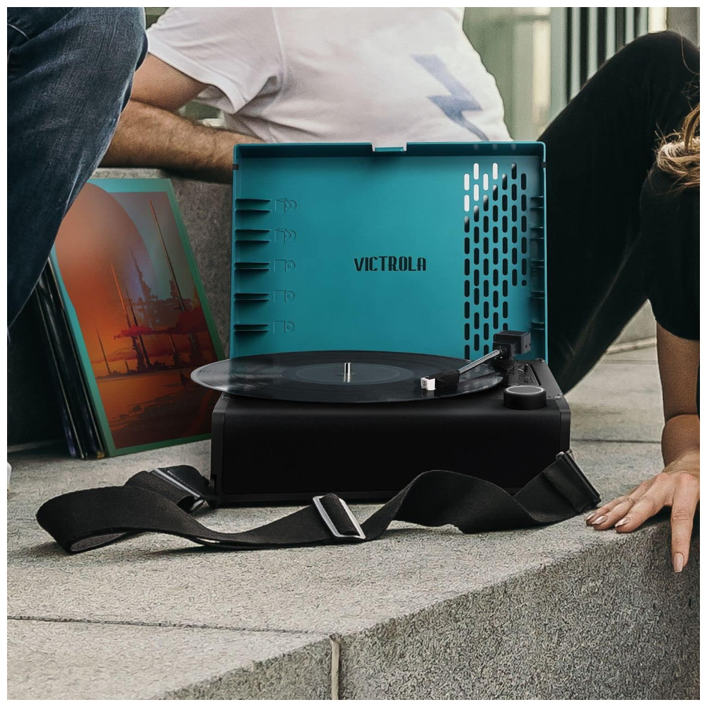 Toca Discos Recarregável Portátil com Bluetooth e Alto Falantes Integrados Victrola Revolution GO Azul