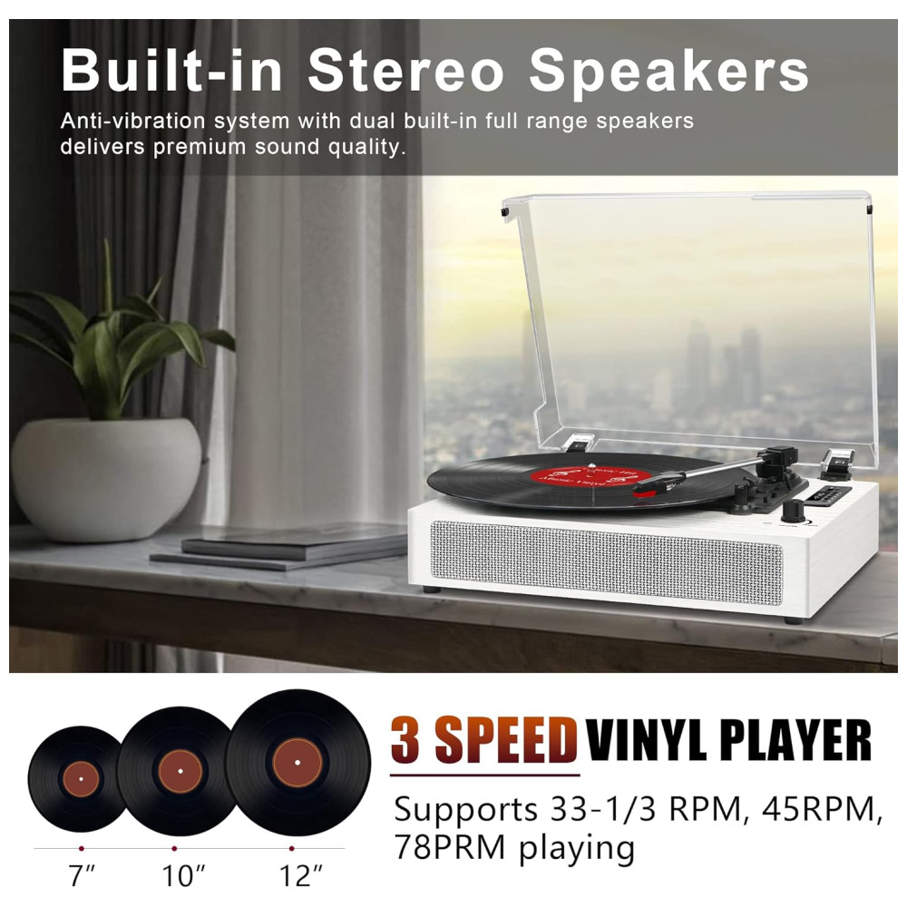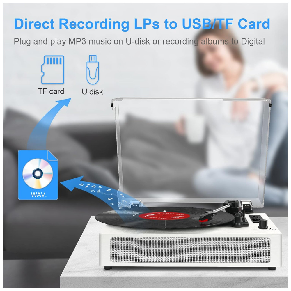 Desfrute de uma experiência musical autêntica com o Toca-discos de 3 Velocidades de Alta Qualidade. Com a capacidade de reproduzir vinis sem fio ou convertê-los para MP3/WAV via USB/SD, este toca-discos é perfeito para preservar sua coleção de vinis enquanto a protege do desgaste. Os alto-falantes estéreo entregam acústica retro calorosa, e as saídas RCA permitem amplificar o áudio com caixas de som externas, sendo ideal tanto para ouvir de forma íntima quanto para preencher uma sala com som. O sistema de autostop inteligente pausa o prato no final do disco, evitando danos ao estilete. Além disso, a conversão USB/SD com um clique suporta MP3 de qualidade de CD, garantindo cópias sem arranhões de LPs preciosos. Construído com base de madeira MDF resistente e braço de tom industrial, este toca-discos combina durabilidade retro-industrial e funcionalidade para se tornar uma peça de arte funcional para qualquer ambiente.