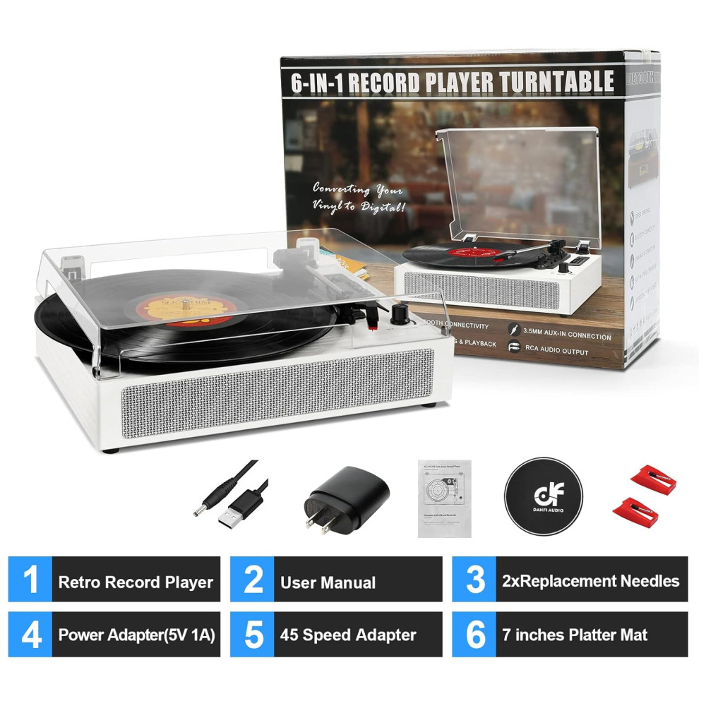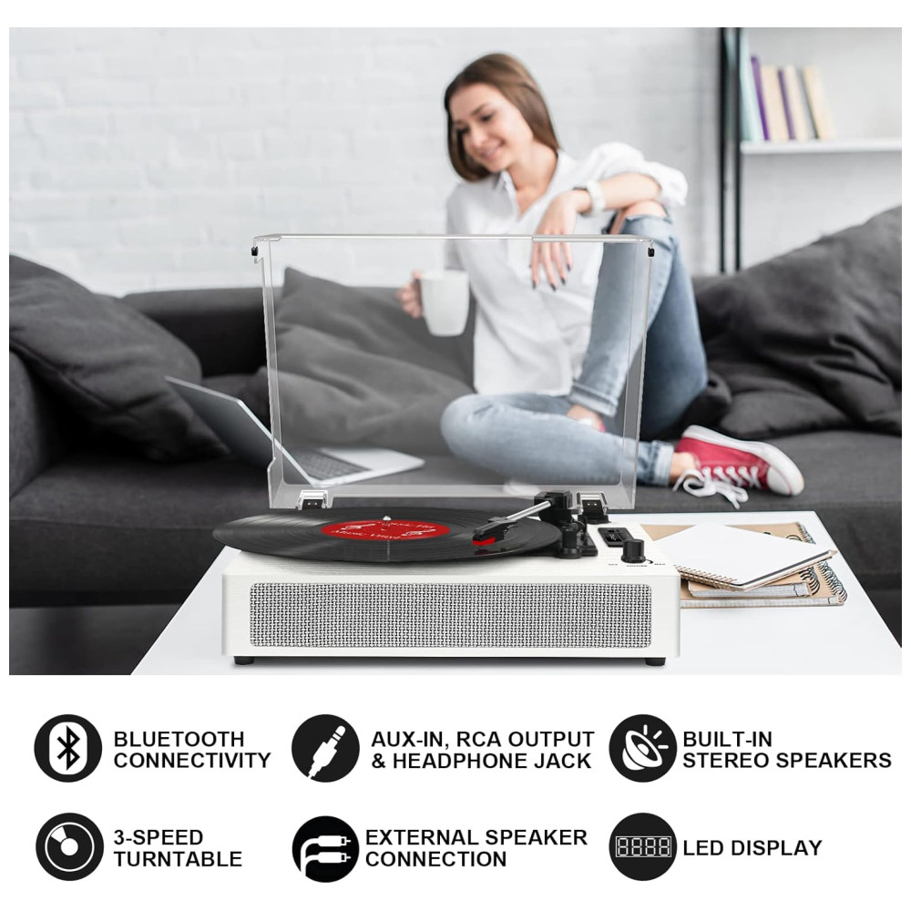 Toca-discos Retrô 3 em 1: Vinil Bluetooth e USB – Alto-falantes Integrados Display Digital e Saída RCA – 3 VelocidadesDANFI AUDIO DF