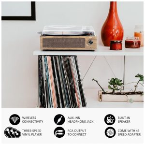 VINTAGE LOOKING GIFT OPTIONS Como um reprodutor de música combina idade e senso moderno, um toca discos estilo vintage e moderno é um ótimo ideal para sua família e amigos amorosos em todos os festivais. Não importa despertar um bom momento na memória, iniciar uma educação musical elementar ou apenas preparar uma surpresa de aniversário.
