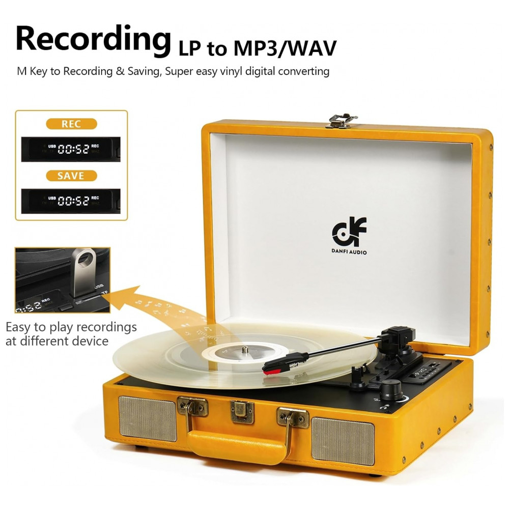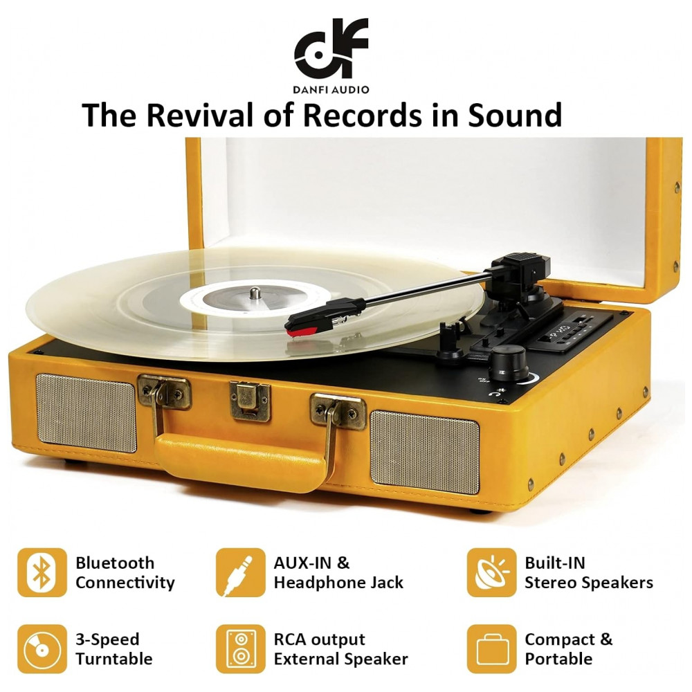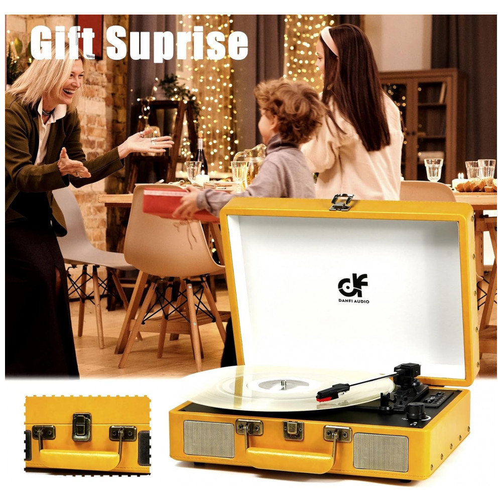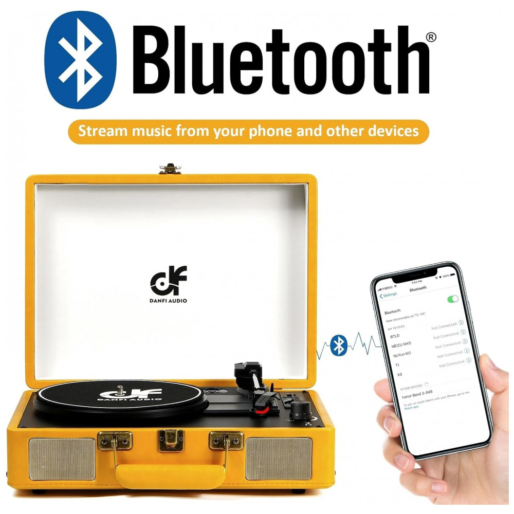 Toca Discos Retro 3 Velocidades com Funções Bluetooth Rádio FM e USB DANFI AUDIO DF Amarelo