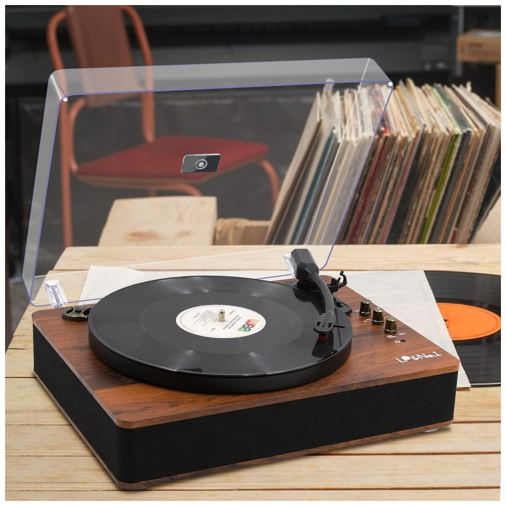 Toca Discos Retro com 3 Velocidades e Alto Falantes Estéreo LPNo1 Marrom Escuro